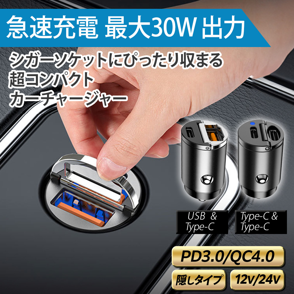 【超コンパクトなのでシガーソケットからはみ出さないコンパクトサイズ!】 超小型設計によりシガーソケットにすっぽり収まる無駄のない形状になっております。 【小型だから取り付けたままふたを閉めることができる。】 ※すべての車種でフタを閉めることを保証するものではありません。 ※car-128-aa(USB TypeA&TypeAのタイプ)は形状が異なり取り付けたまま蓋を閉めることはできません。 【取り出ししやすい折りたたみ取っ手付き!】 折り畳み式のツマミをたてれば取り外しも簡単! 万が一取っ手が折れてもUSBケーブルをさして本体を取り出すことができます。 ※car-128-aa(USB TypeA&TypeAのタイプ)は形状が異なり、取っ手がなく出っ張った部分を持って取り出すことができます。 【2台同時に充電が可能】 スマホ、タブレット、ゲーム機などの機器を同時に充電可能。 12/24V車に対応! 乗用車だけでなくトラックなど多くの車でご使用いただけます。 製品仕様 ・型番car-128-ac 最大出力: 30w USB-Aポート:(QC3.0対応端末 最大30W) 4.5V/5A 5V/4.5A 9V/3A 12V/1.5A USB Type-C(USB-C):(PD3.0/QC対応端末 最大30W) 5V/2.4A 9V/3A 15V/2A 20V/1.5A ・ 型番car-128-cc 最大出力: 30w USB Type-C(USB-C):(PD3.0/QC対応端末 最大30W) 5V/2.4A 9V/3A 15V/2A 20V/1.5A USB Type-C(USB-C):(PD3.0/QC対応端末 最大30W) 5V/2.4A 9V/3A 15V/2A 20V/1.5A ・型番car-128-ac、car-128-cc共通仕様最大出力合計: 同時使用時最大24W 対応プロトコル:QC4.0, QC3.0,QC2.0,SCP,AFC,FCP,PD3.0,PD2.0,Apple2.4Aなど 対応ソケットサイズ:Φ20mm〜22mm 入力:DC12V-24V 本体サイズ:(約)Φ20.5×H40mm 重さ:(約)20g ※急速充電したい場合は1ポートのみでご使用下さい。 保証期間:購入から半年間 製造国: 中国 ・型番car-128-aa 製品仕様 最大出力: 36w 型番:car-128-aa USB-Aポート:(QC3.0対応端末 最大36W) 5V/3A 9V/2A 12V/1.5A 最大出力合計: 同時使用時最大24W 対応プロトコル: QC3.0,QC2.0,SCP,AFC,FCP,PE1.1など 対応ソケットサイズ:Φ20mm〜22mm 入力:DC12V-24V 本体サイズ:(約)Φ21×H45mm 重さ:(約)37.5g 保証期間:購入から半年間 製造国: 中国 ※急速充電したい場合は1ポートのみでご使用下さい。 【ご使用について】 ●商品改良のため、仕様・外観は予告なく変更する場合があります。また実物は写真と異なる場合がありますので、あらかじめご了承ください。 ●輸送時の擦れや細かなキズがある場合がございます。必ずご理解の上ご購入ください。 ●画像はモニターにより色あいが違って見える場合がございます。また一部イメージ画像を使用しております。あらかじめご了承ください。 ●ご注文の際は、お買い物ガイドをよくお読みの上でご注文いただきますようお願い申し上げます。 |