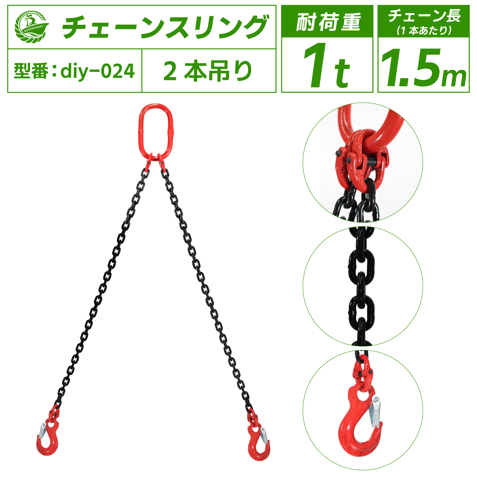 チェーンスリング 1ton 2本吊り スリングフックタイプ チェーンフック ベルトスリング 吊ベルト 吊り上げ 吊り 工具 爆買