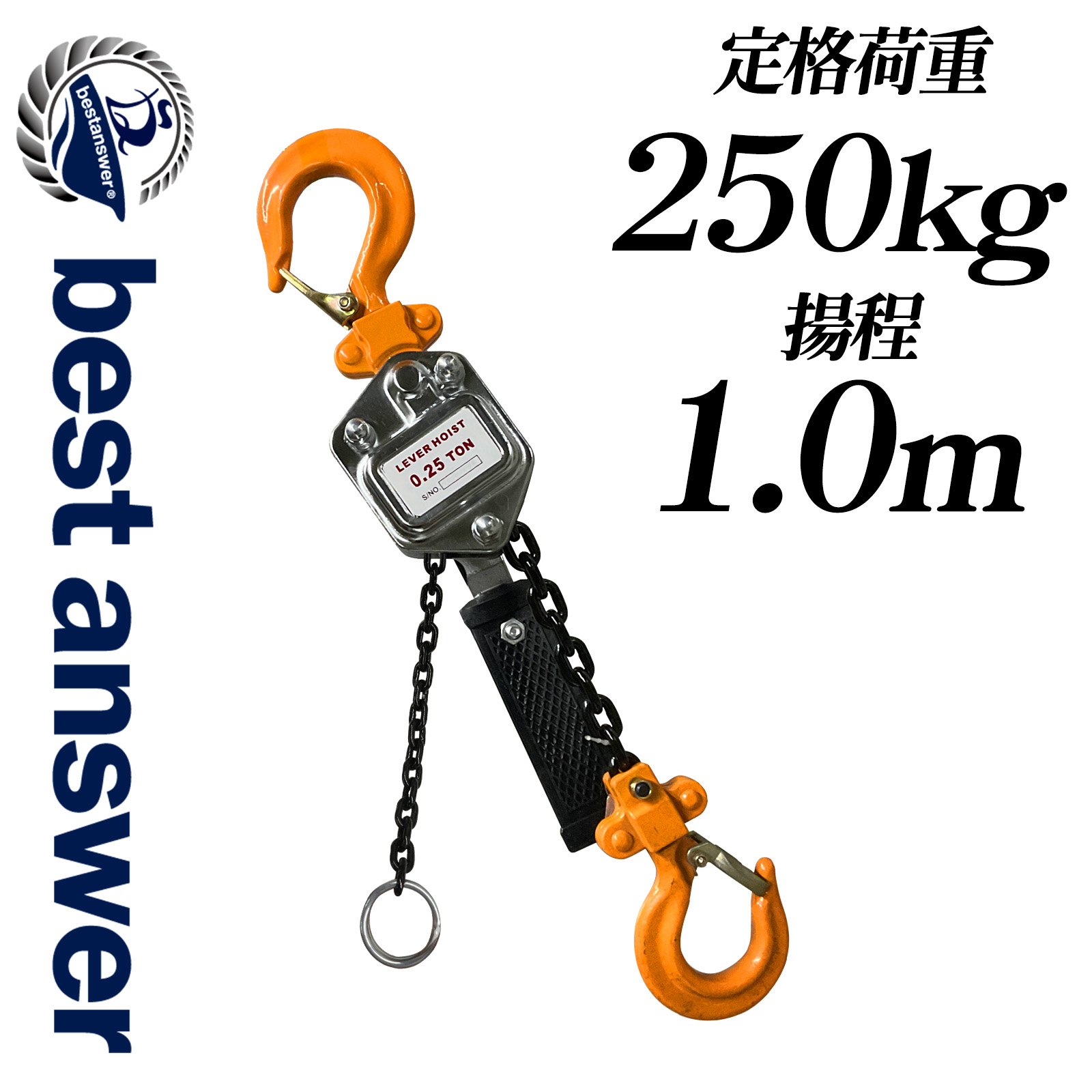 商品の説明 商品の仕様 ●定格荷重(t):0.25 ●標準揚程(m):1.0 ●フック間最小距離(mm):230 ●レバー長さ(mm):150 ●自動空転式 ●手動力(N):217 ●チェン線径(mm):4.0 ●本体重量(kg):1.8 ●PL保険(生産物賠償責任保険)加入商品 ●製造国:中国 ※ご使用の前に付属の取扱説明書を熟読し、機器の知識・安全の情報そして注意事項について習熟してから正しくご使用ください。※商品改良のため、仕様・外観は予告なく変更する場合があります。また実物は写真と異なる場合がありますので、あらかじめご了承ください。また多少の塗装はげ、小キズ・ヘコミ等ある場合がございますがご理解の上ご購入をお願いします。分解・改造した場合は保証期間内であっても保証対象外とさせて頂きます。 |