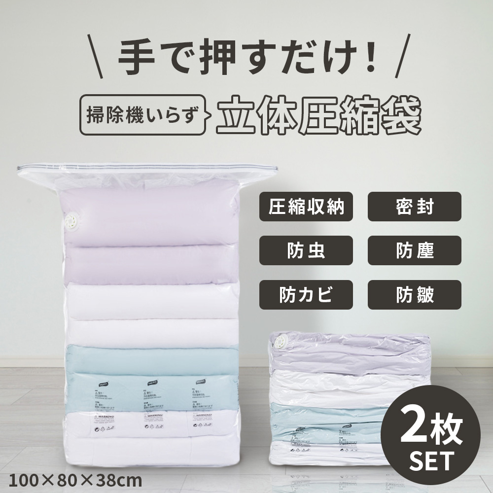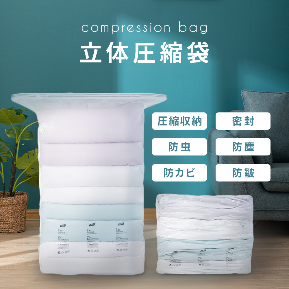 立体 立体圧縮袋 圧縮袋 衣類袋 衣類圧縮袋 布団圧縮袋 トラベルポーチ 掃除機不要 ポンプ不要 吸引機不要