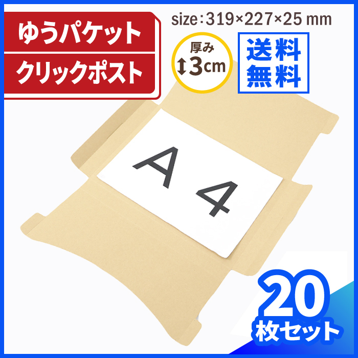 クリックポスト 箱 ダンボール 段ボール A4 定形外郵便 発送 20枚 |319×227×25mm(0410)