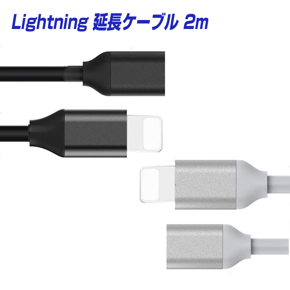 ライトニング 延長ケーブル 2m ホワイト ブラック オスメス 延長コード 2.0m iPhone iPad 対応 Lightning 充電 データ転送 iOS18対応 アダプタ 送料無料 |L