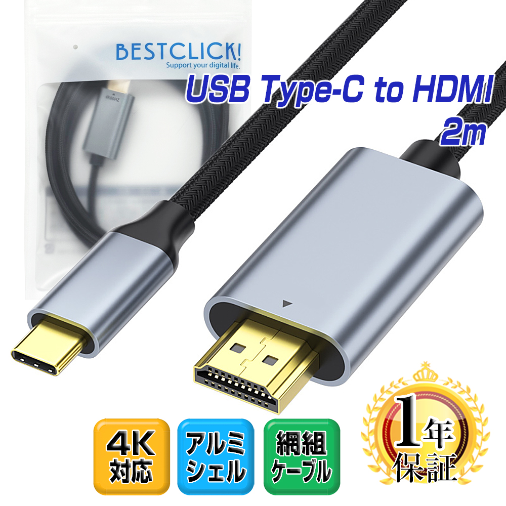 BestClick! USB Type-C HDMI 変換ケーブル 2m 4k対応 テレビ ゲーミング オス usb-c 変換アダプタ iPhone17/16/15 MacBook Air Pro iMac mini などに対応
