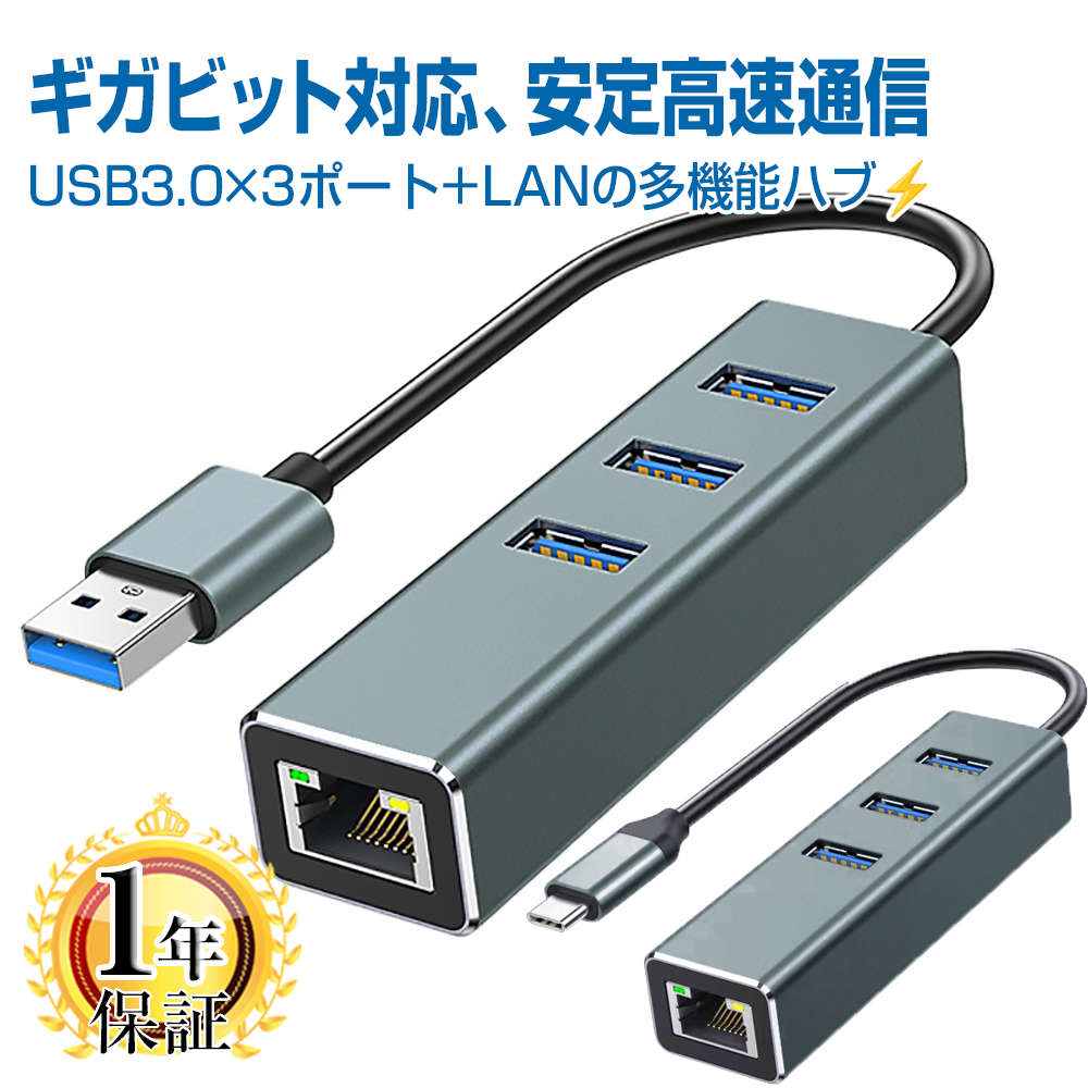 USB 3.0 LAN 変換アダプタ ハブ USBハブ 3.0×3ポート HUB USB-C USB-A to RJ45 拡張 アルミ合金シェル 有線LAN adapter イーサネット ギガビット イーサネット