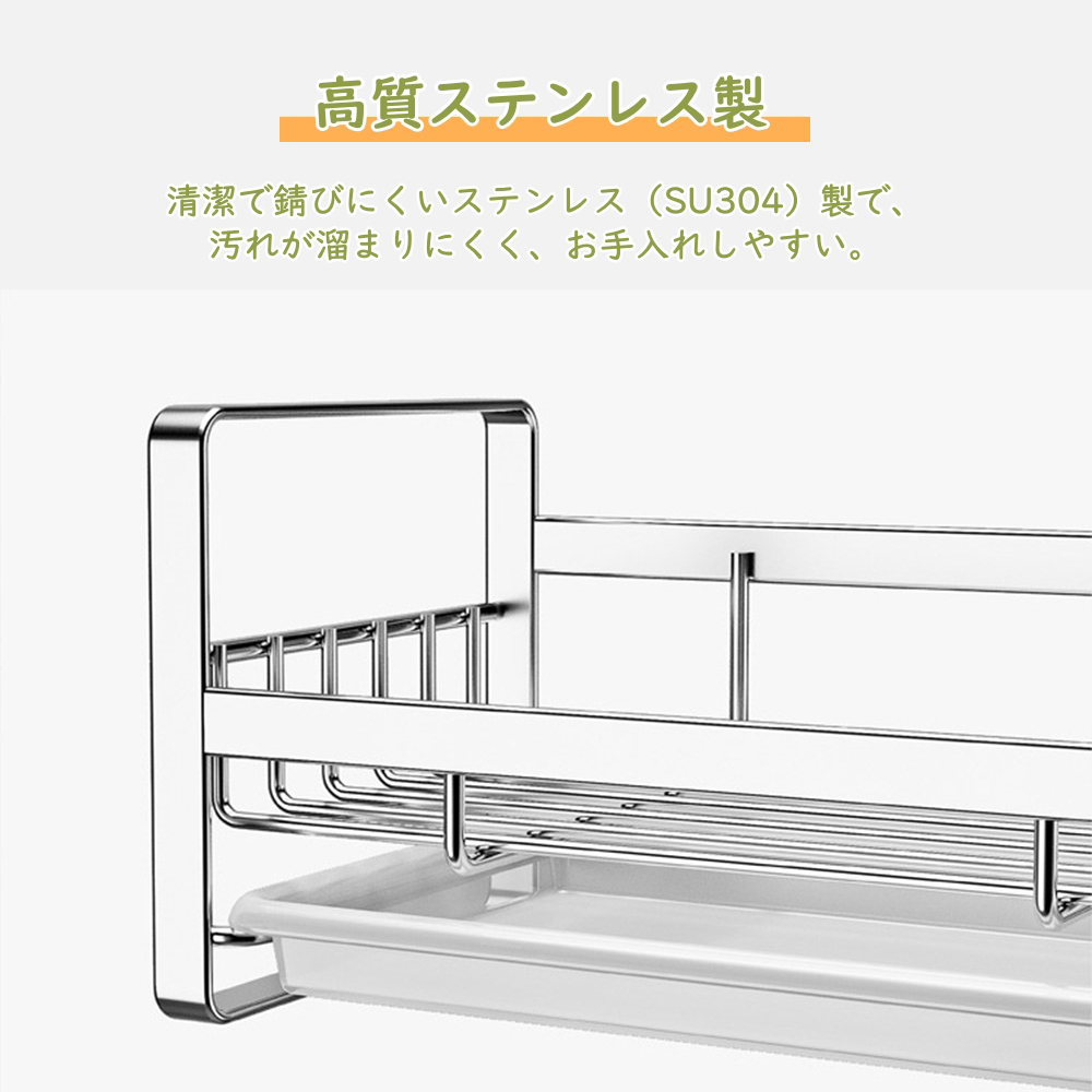 【高品質ステンレス製】SU304ステンレス製で錆びにくく、汚れが溜まりにくいため、お手入れが簡単。脚ゴム付きで滑りにくく、設置面を傷つけません。
