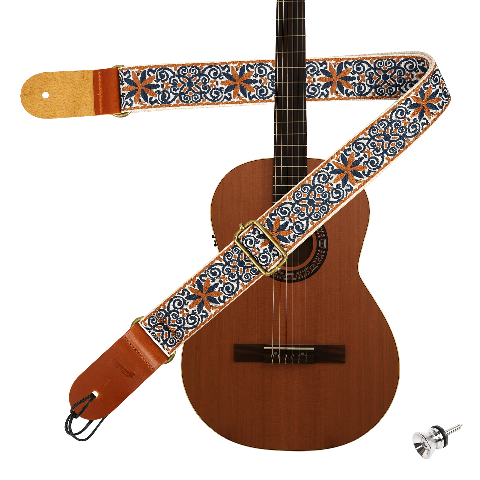 丈夫な金属製の調節バックルを採用。簡単な操作でストラップの長さを細かく調整でき、お一人お一人の体格や好みの演奏姿勢にぴったりとフィットさせることができます。 |