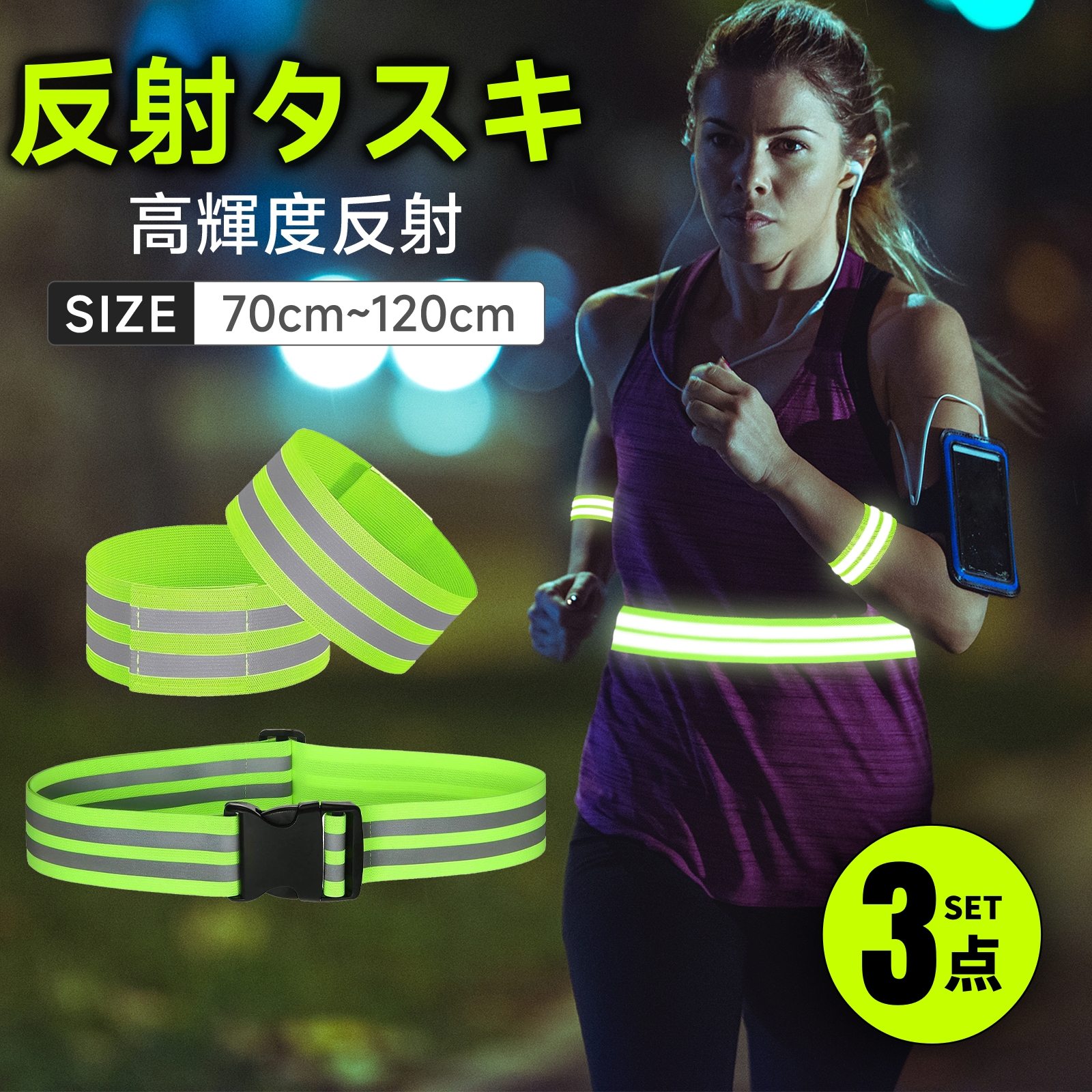 反射タスキ 3点セット 反射 夜間 蛍光 反射材 高輝度反射 明るい 安全 安心 防犯 事故防止 通勤 通学 小学生 子供 ウォーキング ジョギング サイクリング 散歩