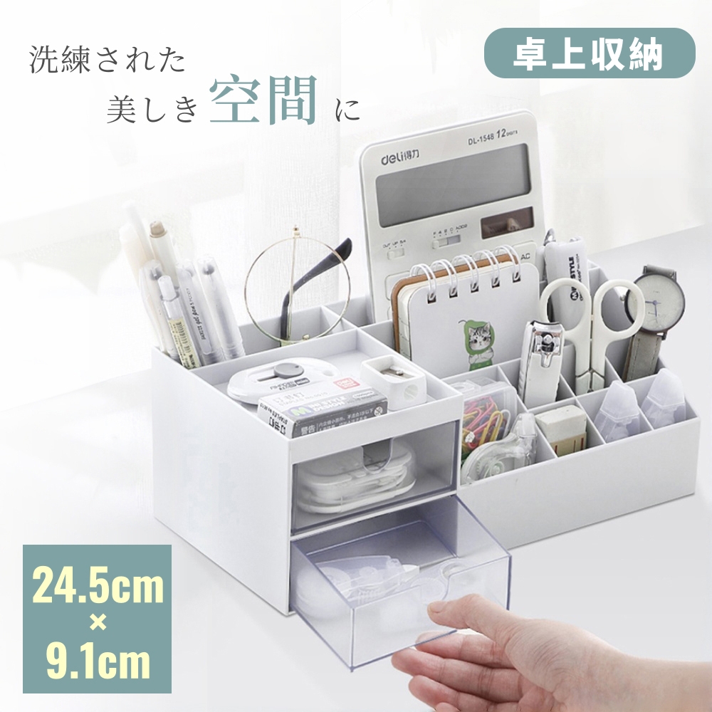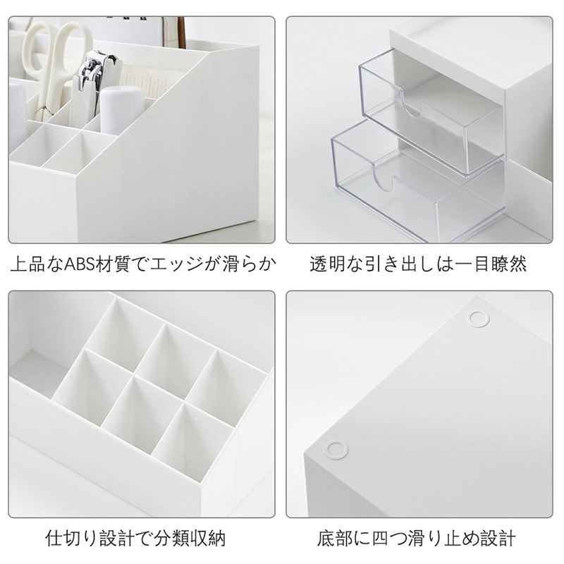 | 【多機能収納】 | 文房具、化粧品、宝石類、リモコン、眼鏡などのテーブル周りの小物をすっきり収納ストレージ。事務所、学校、家庭生活が不可欠なデスクトップストレージ。 |