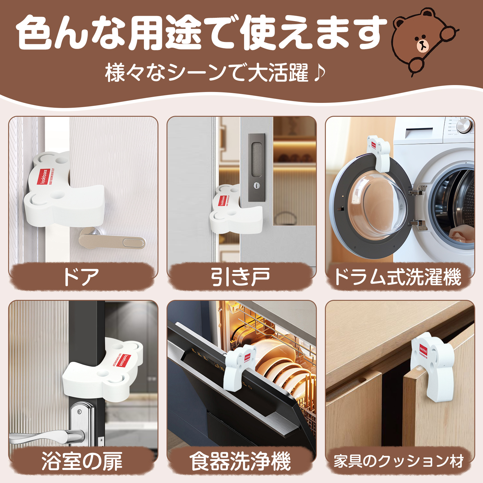 小さなお子様やペット、高齢者の手指を守るために設計されたドアストッパー。ドアが閉まる際に手を挟むリスクを防ぎ、家族全員の安全を守ります。 |