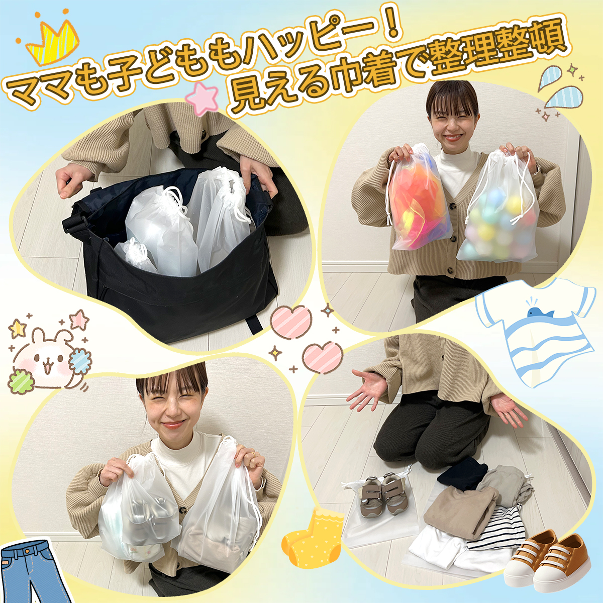 \濡れたものもスッキリ分ける!防水ビニール巾着袋/