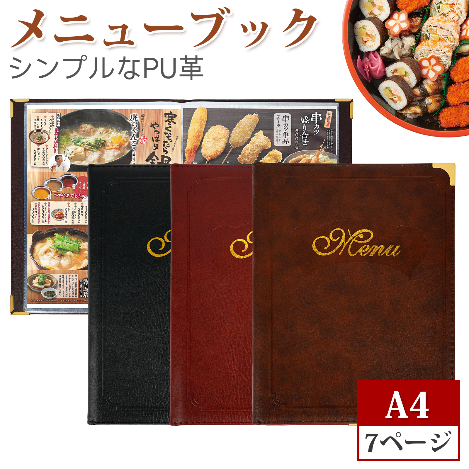 メニューブック a4 7ページ 14面 PUレザー おしゃれ A4対応 メニューファイル 縦 店舗用 カフェ レストラン バー パン屋 美容院 取り外し可能 上質 高級感 洋風
