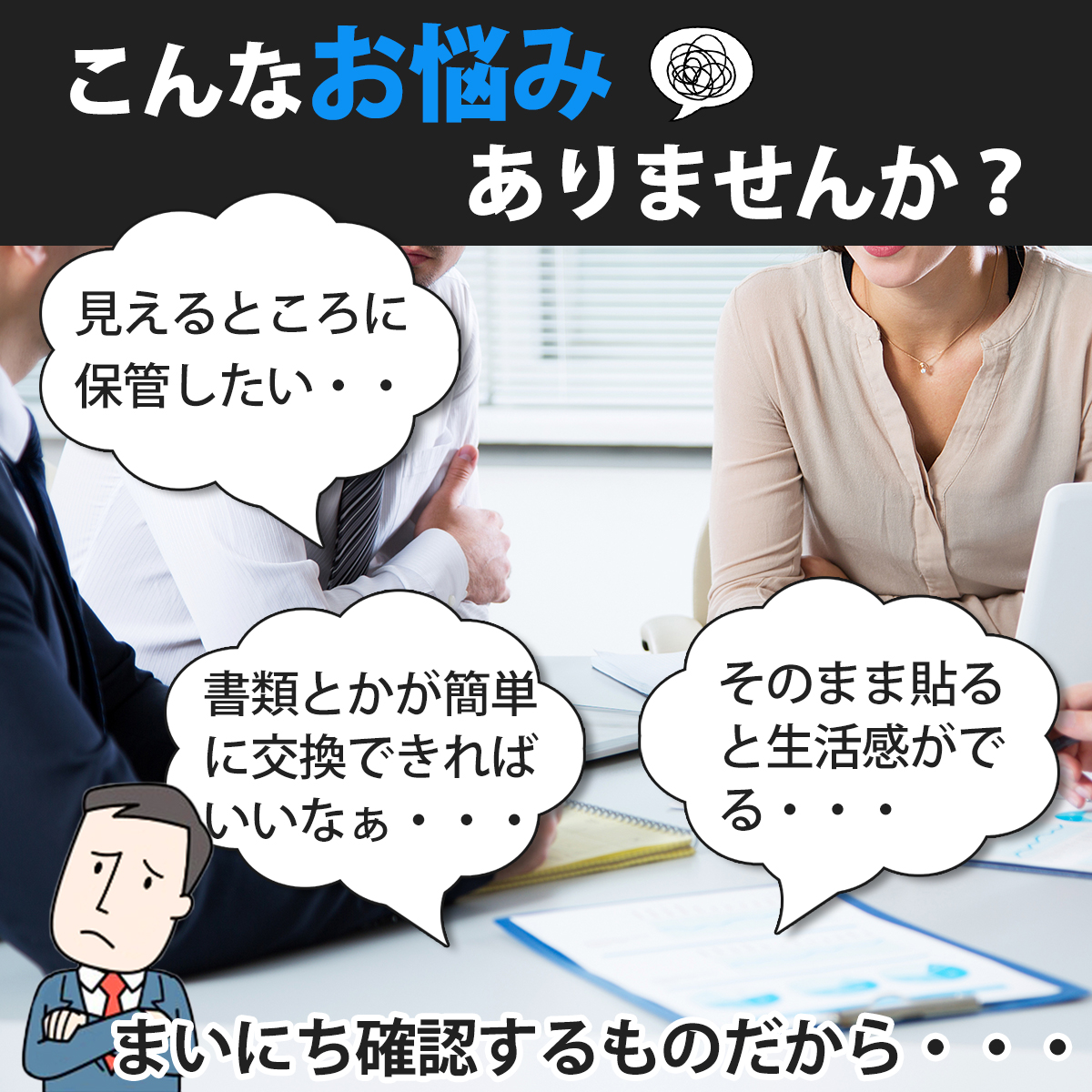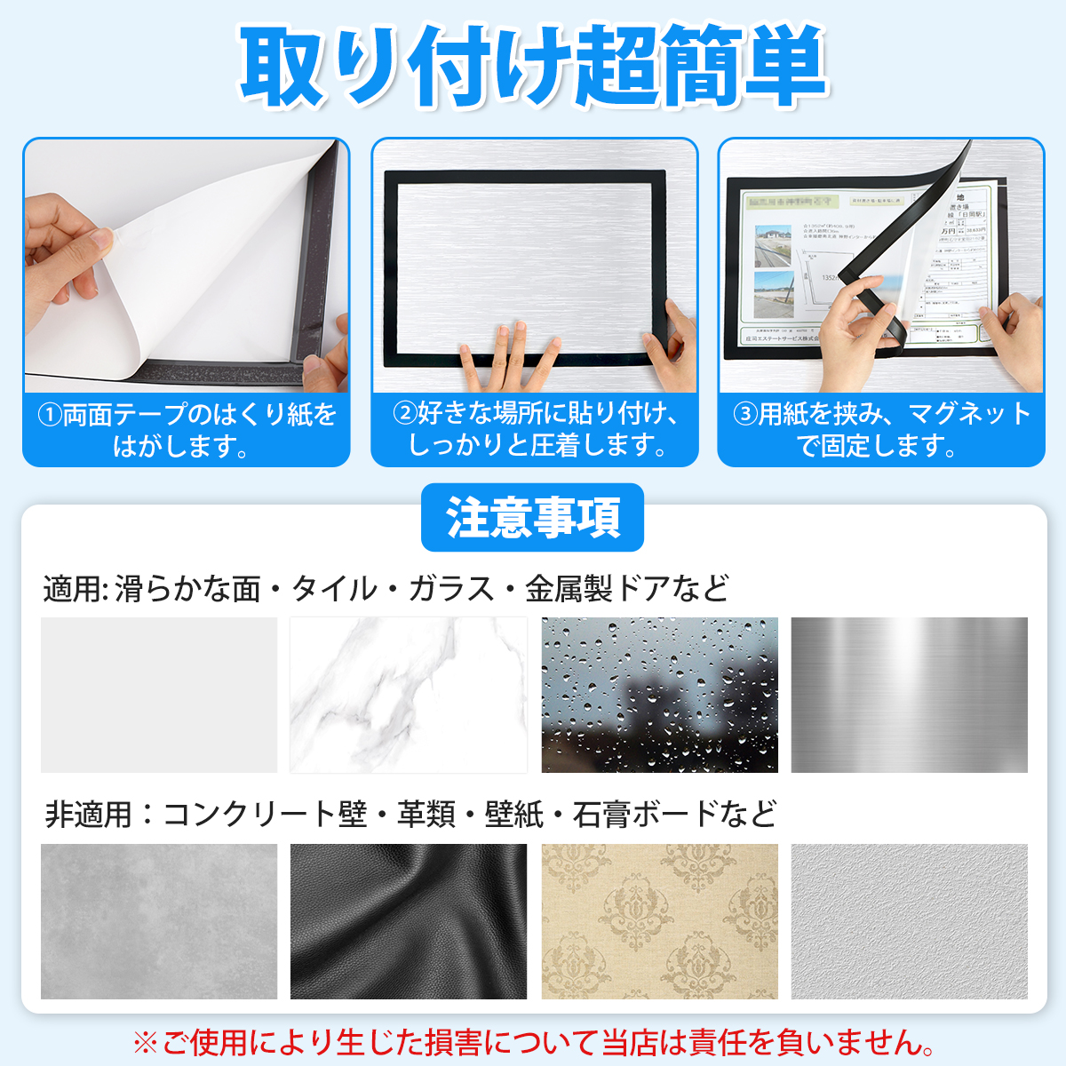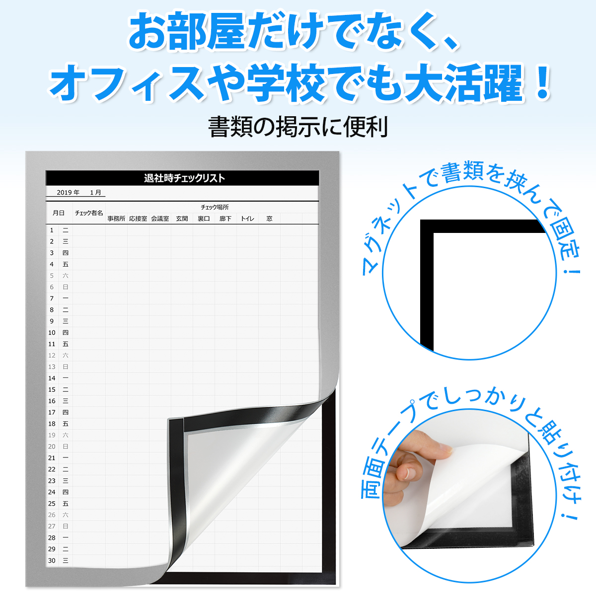 【マグネット式で簡単交換】強力なマグネットが内蔵されており、用紙をしっかりホールド。必要な時に簡単に差し替え可能!
