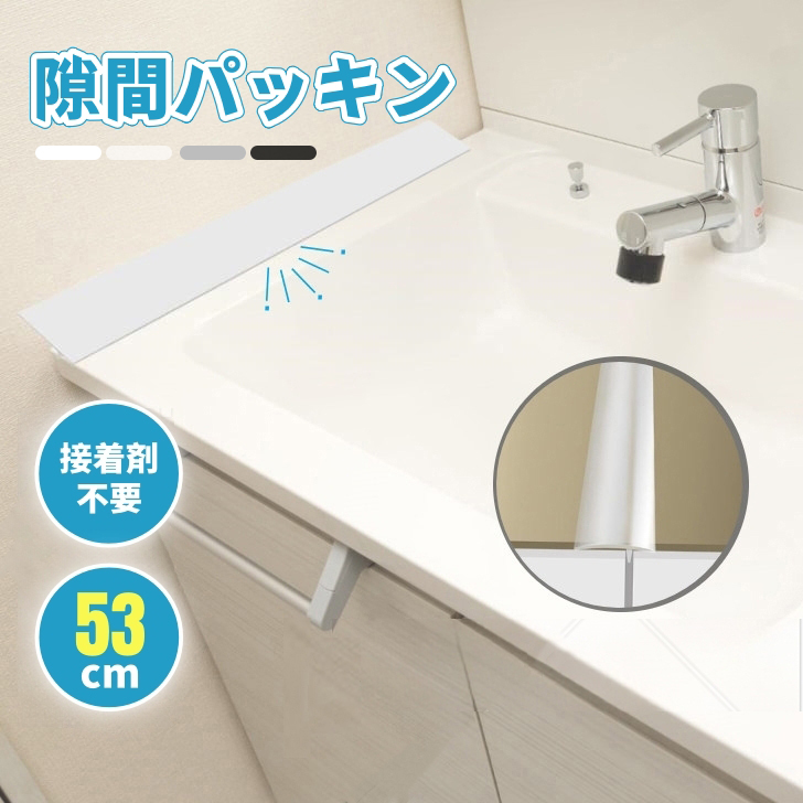 隙間埋め すきまぱっきん 自由裁断可能 水はね防止 スキマ パッキン 接着剤不要 取付・取り外し簡単 差し込む シリコン 柔らかい 防水 防汚 白 ホワイト 黒 ブラック 透明 洗面化粧台のすきまパッキン