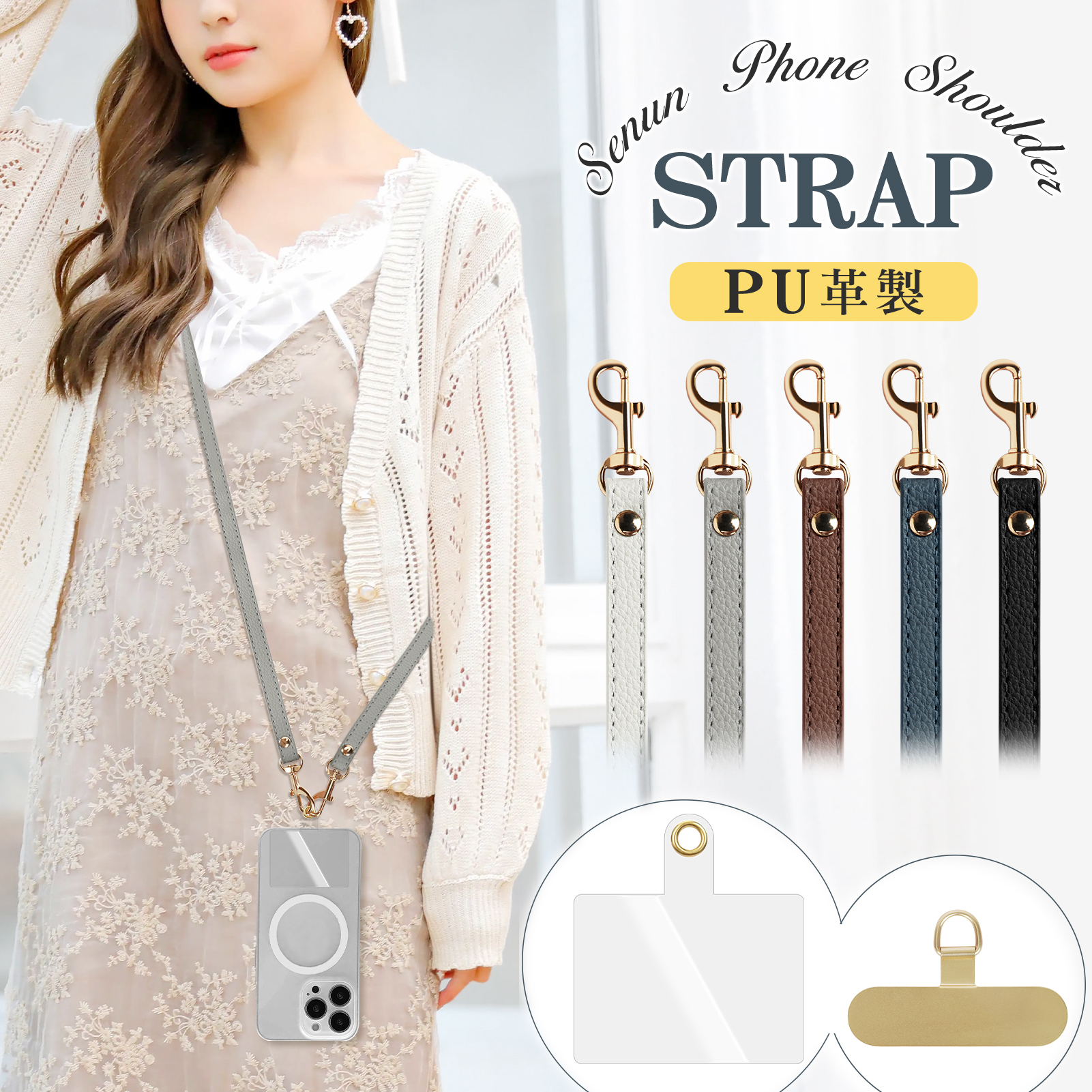 1.高温に注意:高温の環境に長く置かないでください。例えば、炎天下の車内や暖房器具の近くなどでは、PU レザーが変形したり、質感が損なわれる可能性があります。 2.化学薬品との接触を避ける:強い化学薬品と接触すると、表面が損傷する恐れがあります。洗浄剤などを使用する場合は、適切なものを選んでください。 3.湿気に注意:長期間湿気の多い環境に置くと、カビが生えたり、劣化が早まることがあります。 4.適切な保管:使用しないときは、通気性の良い場所できちんと保管してください。 これらの注意事項を守ることで、PU レザー製品の寿命を延ばすことができます。 「その他の注意事項」 ※本商品はストラップ、ホルダーのみの販売となっております。 ※ご利用のモニターによって、実物と異なる色に表示される場合がございます。予めご了承下さい。 ※材質の特性上、折り曲げたり強い衝撃を与えますと破損する恐れがございます。お取扱いにご注意ください。 ※本製品は、スマホ本体を傷や衝撃から保護を目的とする商品ではありません。スマホ本体の破損、キズ、故障、データなどの破損については、一切の責任を負いかねます。 ※公共交通機関や人混みの中では、ストラップが他の人や物に引っかかってスマホを落とす危険性に注意してください。 |