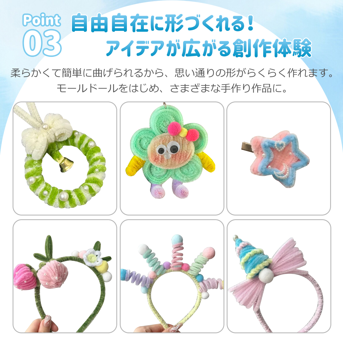 【自由自在! 簡単に曲げられる】柔らかくて加工しやすいので、お子様から手芸初心者の方でも思い通りの形に簡単に創作できます。