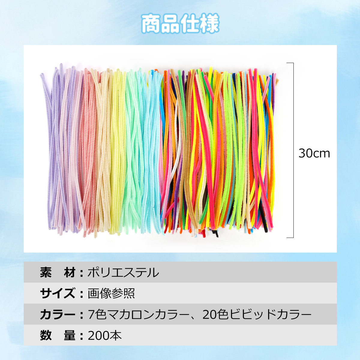 手芸モール 200本入り モールドール カラーモール 混色 ミックスカラー マカロンカラー 手芸材料 手作り素材 クリスマスツリー飾り DIY飾り 母の日 贈り物