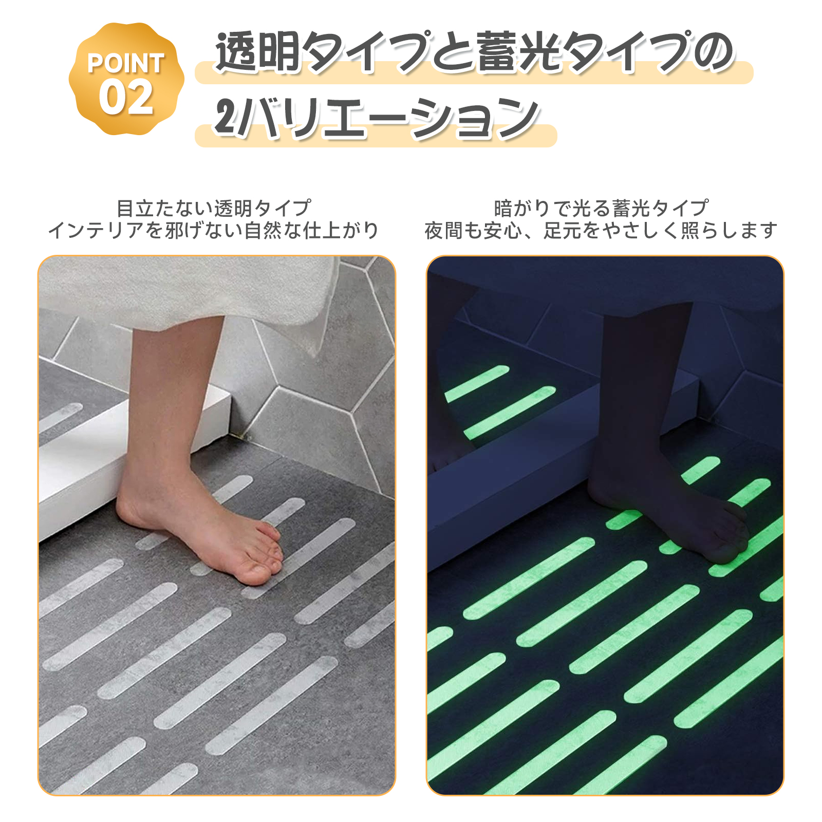 特殊ダイヤモンド凹凸加工で、靴下や素足の状態でもしっかりグリップ。家庭内の転倒リスクを軽減します。 |