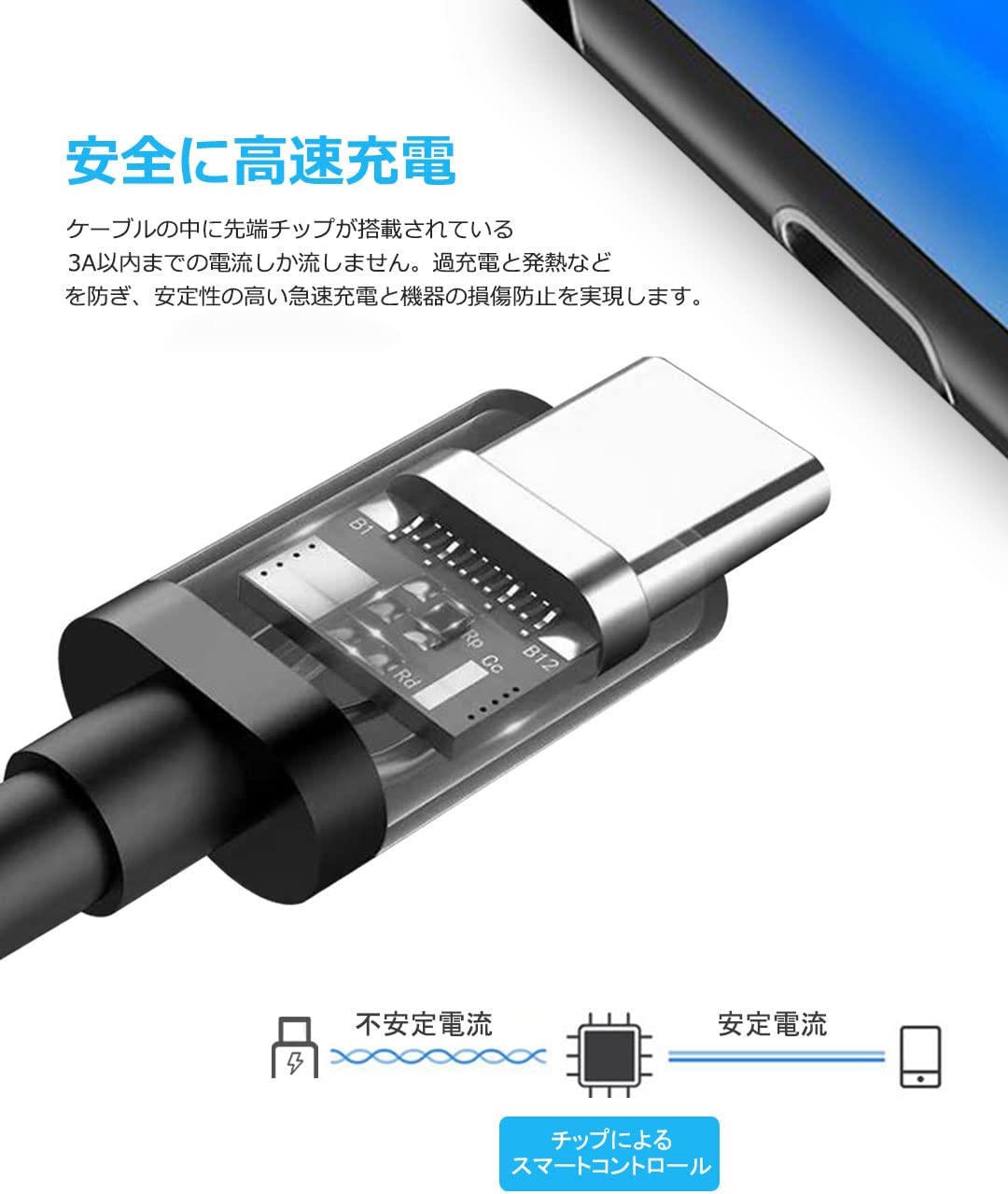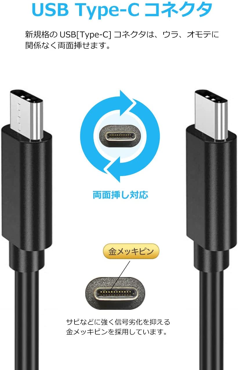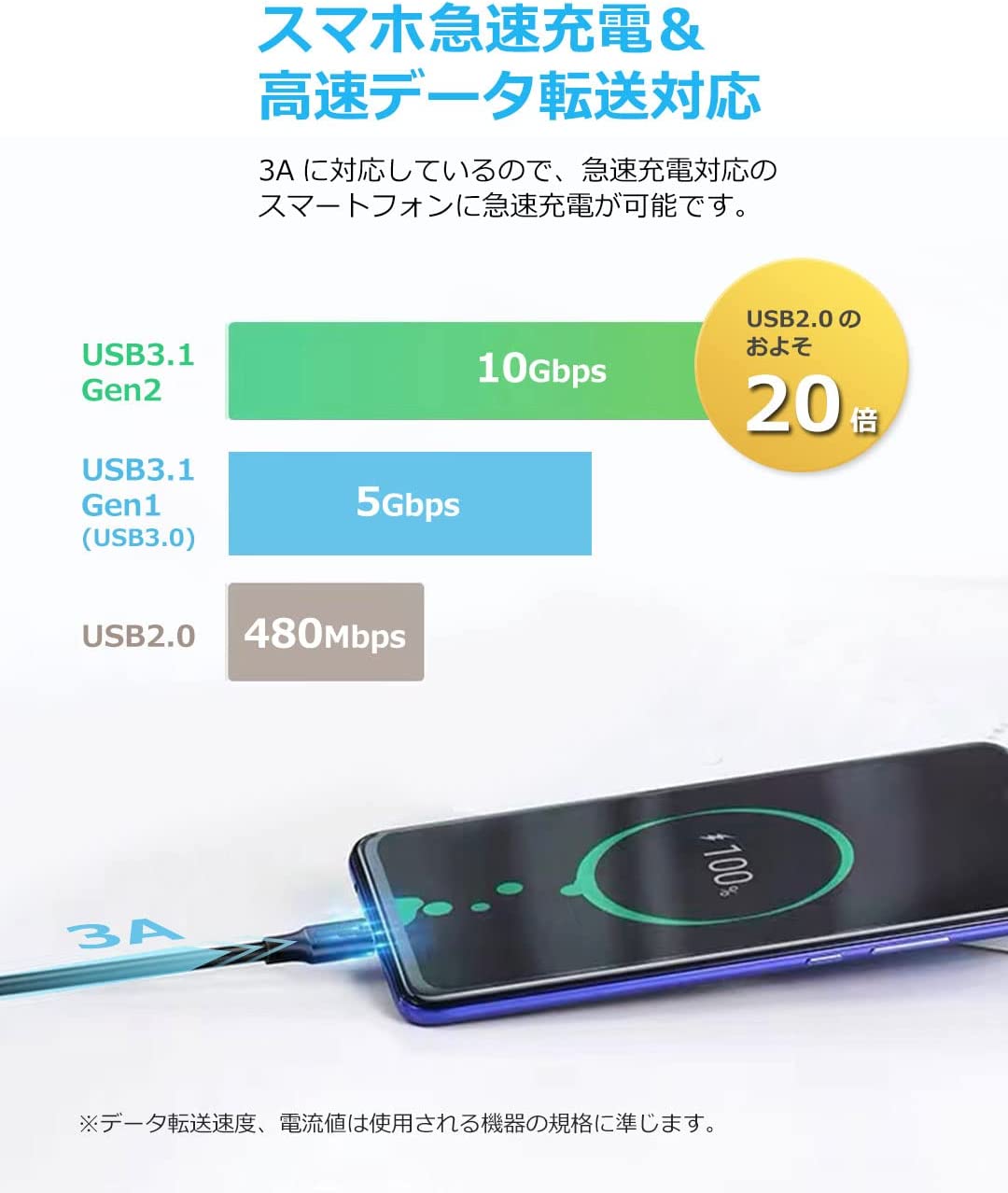 USB Type C ケーブル USBケーブル 3.1 Gen2 10Gbps 高速データ転送 PD QC3.0対応 3A急速充電 ケーブル 1m