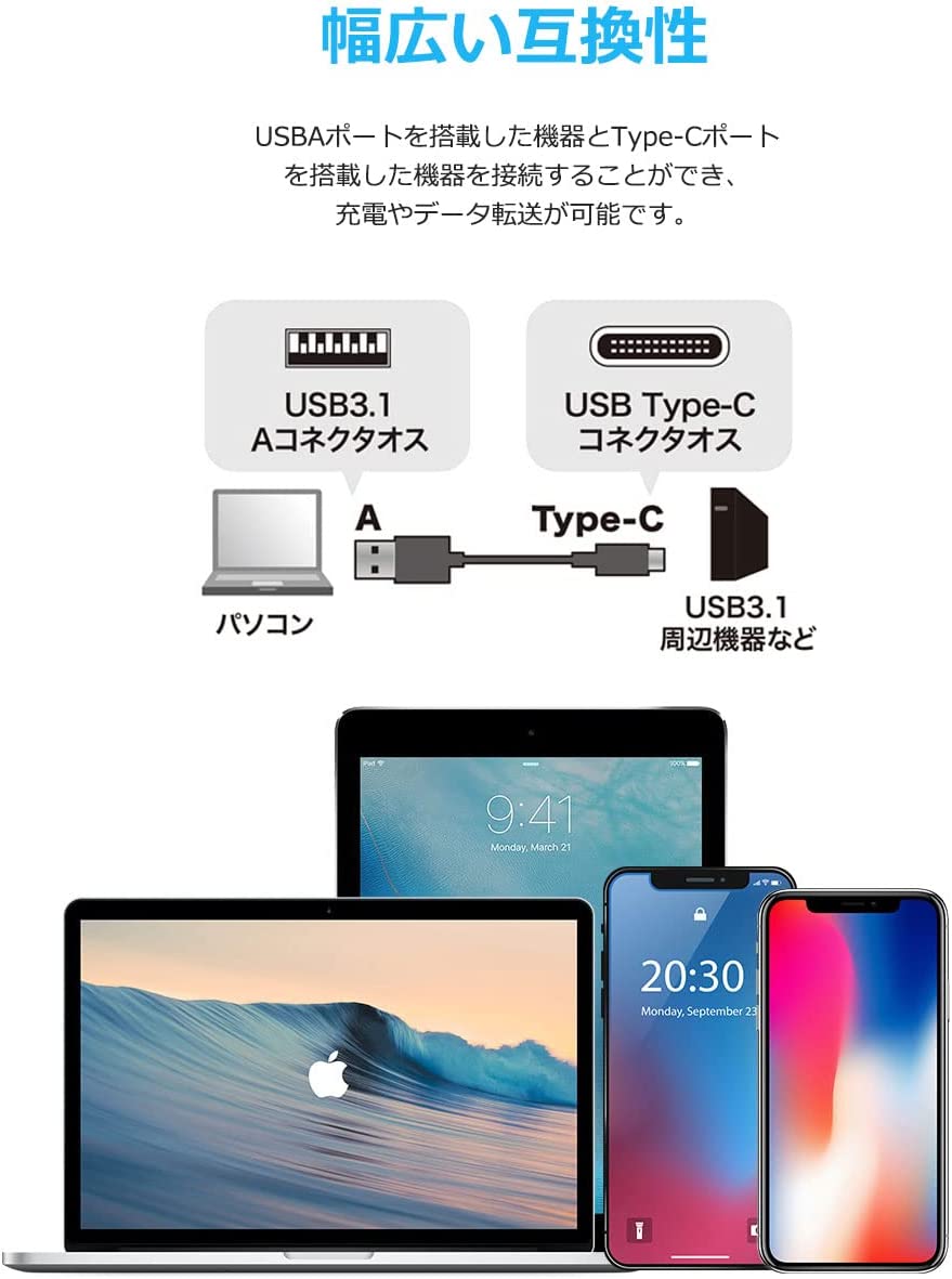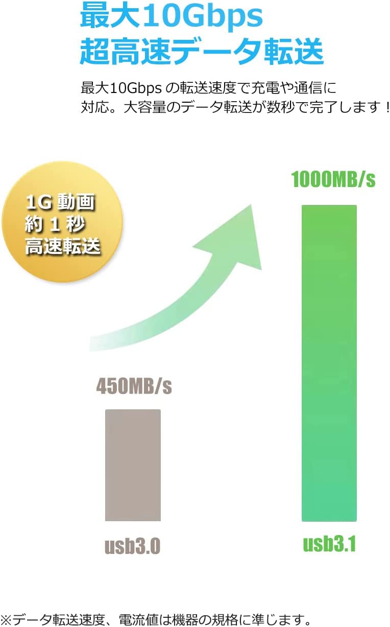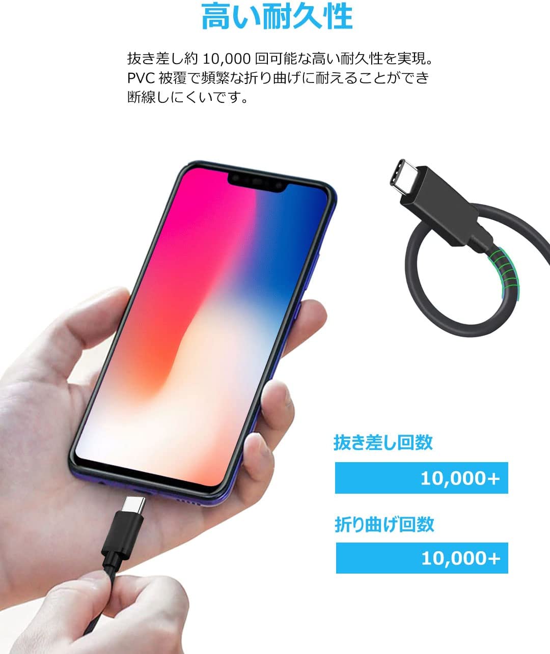 USB Type C ケーブル USBケーブル 3.1 Gen2 10Gbps 高速データ転送 PD QC3.0対応 3A急速充電 ケーブル 1m