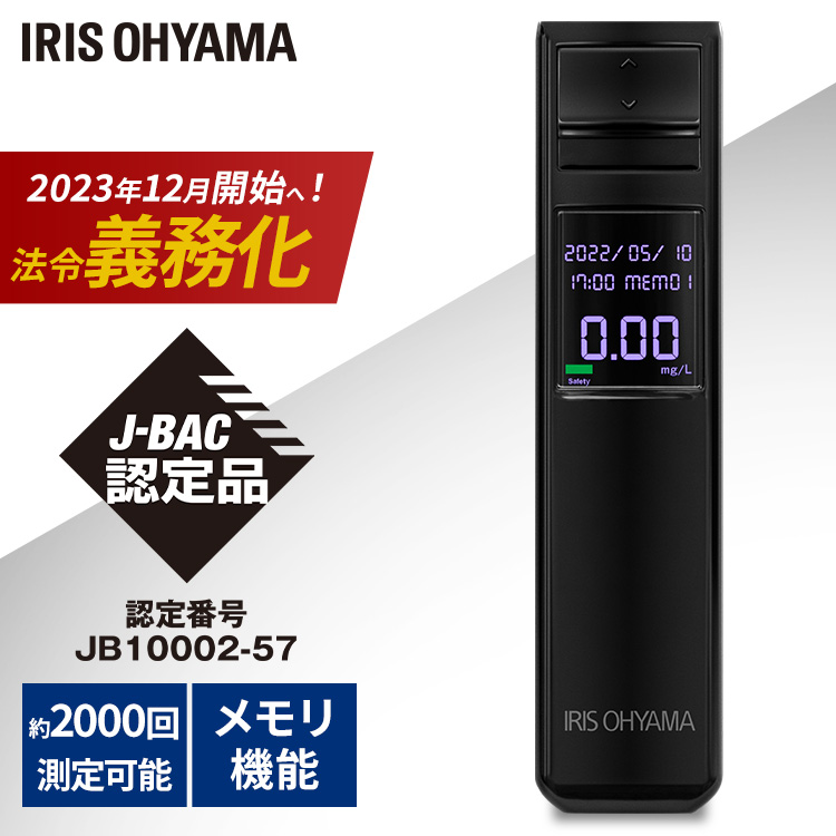 アルコールチェッカー アイリスオーヤマ 義務化 法改正 データ 保存 自動 記録 業務用 高精度 アルコール検知器 アルコールセンサー 半導体センサー 道路交通法 おすすめ アルコールチェック IR-AC002 携帯型 携帯用