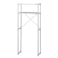 洗濯機のサイズに合わせて、内寸を幅60〜88.5cmまで伸縮できるランドリーラックです。上部には、小物が落ちにくいプラスチック製のフラット棚を付けました。洗剤などをまとめて収納できます。すじかい構造で、ぐらつきを防止します。また、上下が分割できるため、洗濯機を置いたままでも設置が簡単です。