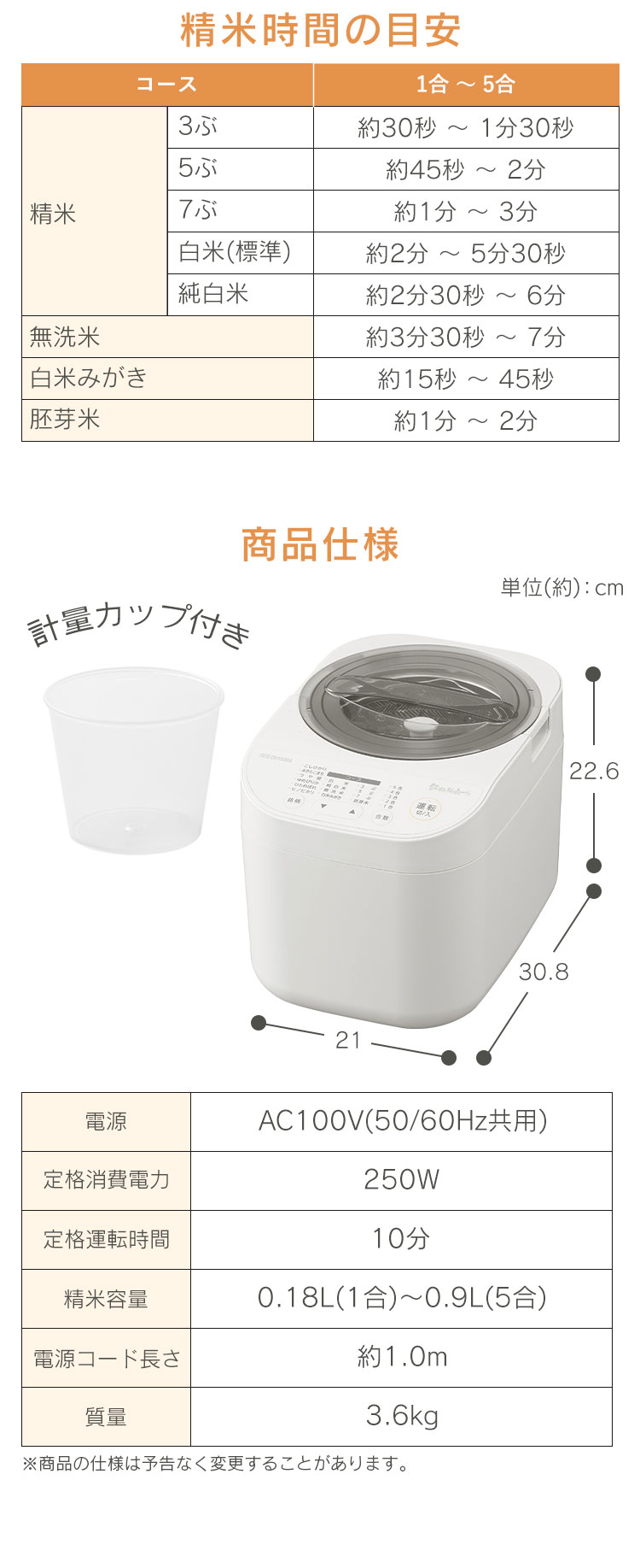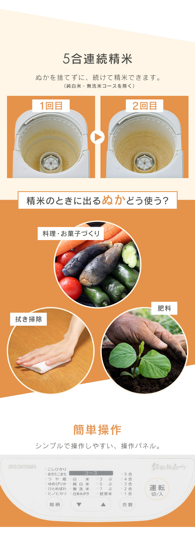 [検索用:精米機 家庭用 5合 かくはん式 5合連続精米 玄米 3分 5分 7分 胚芽米 白米 純白米 無洗米 古米 白米みがき 40銘柄対応 お手入れ簡単 取っ手付 ぬかボックス おうちで精米 家庭用精米機 精米器 銘柄純白づき アイリスオーヤマ 4967576787086]