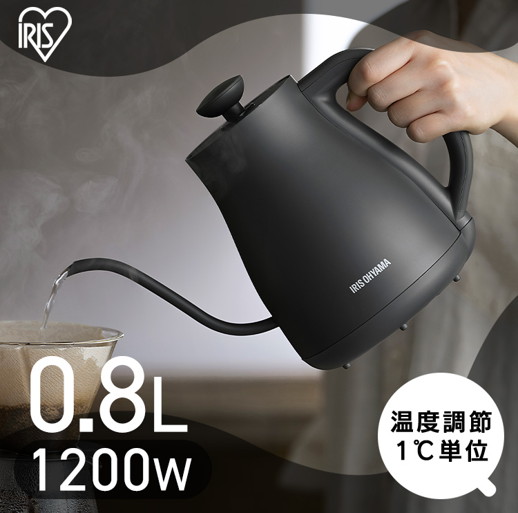 [検索用:電気ケトル 0.8L ケトル 電気 電気ポット 湯沸かし 温度調節 保温 内側 ステンレス おしゃれ 細口 湯漏れ防止 空焚き防止 一人暮らし 4967576705714]