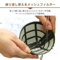 洗って繰り返し使えるメッシュフィルター付き。お好みで紙フィルターも使えます。
