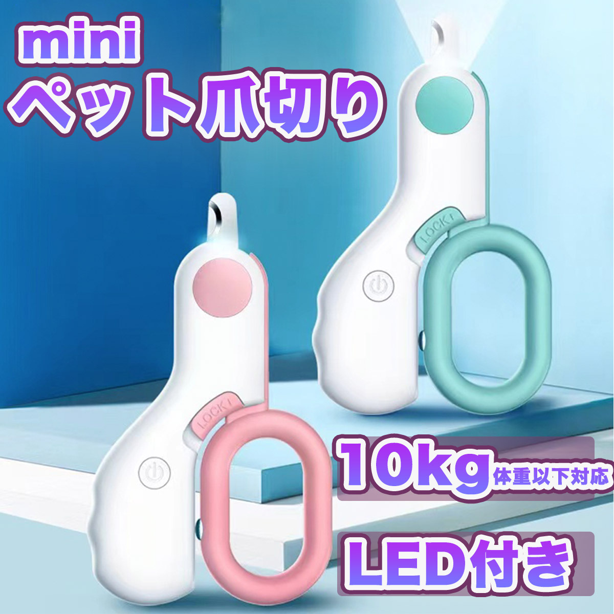 ペット用爪切り 猫 犬 つめきり LEDライト付き ネイルケア カプセルペット mini 安全ロック付き ステンレス刃 血管 ニッパー式 携帯便利