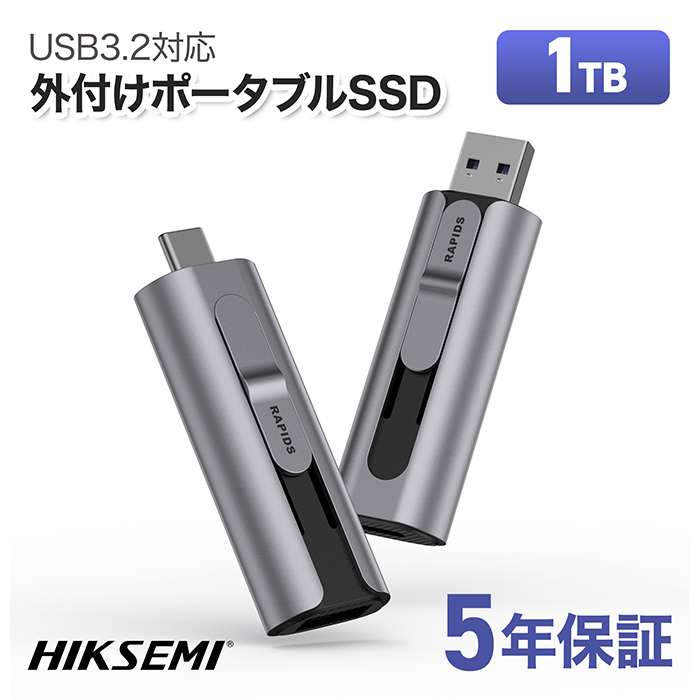 【レビュー特典】HIKSEMI ポータブルSSD 1TB 高速 最大転送速度560MB/s 超小型 軽量17.5g 外付けSSD Type-A/Type-C 両対応 PS4/PS5 メーター5年保証 S560 1T U3
