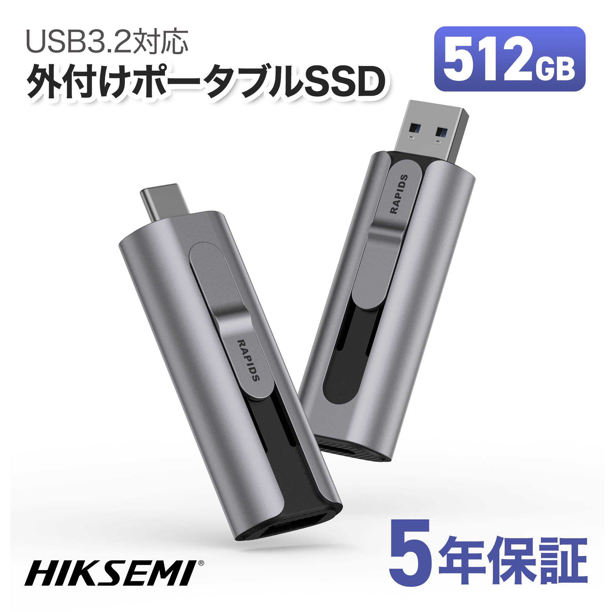 HIKSEMI ポータブルSSD 512GB 高速 最大転送速度560MB/s 超小型 軽量17.5g 外付けSSD Type-A/Type-C 両対応 PS4/PS5 メーター5年保証 HS-USB-S560 512G U3