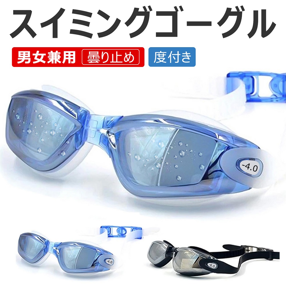 【安心な医療機器認証品】スイミングゴーグル 度付き ゴーグル 水泳 くもり止め スイムゴーグル 水中メガネ UVカット 低抵抗 水中眼鏡 水中ゴーグル 大人 子供 男女兼用 広い視野 近視用 度付きレンズ 送料無料 2色 ブラック ブルー ★収納ケース付★ 父の日ギフト