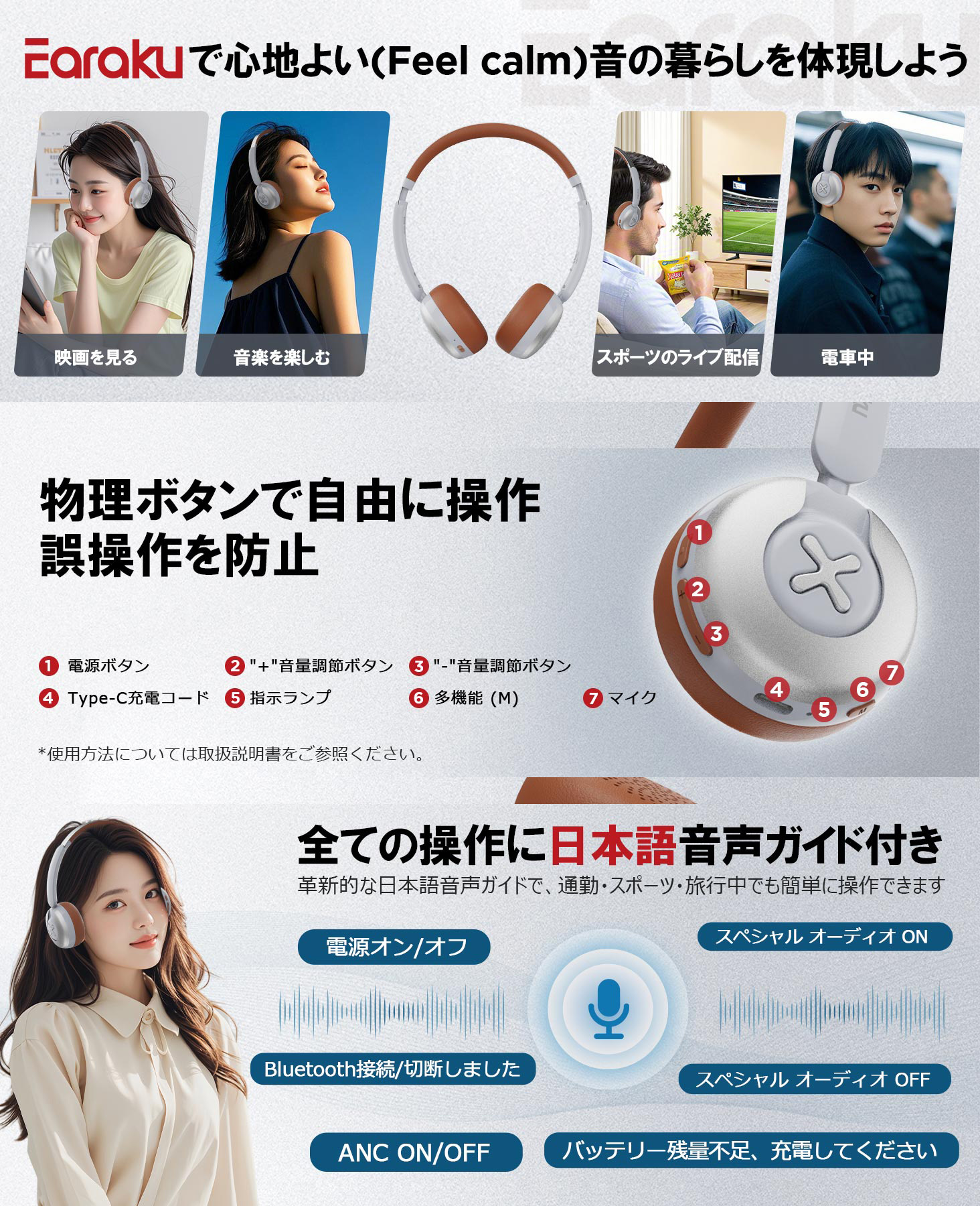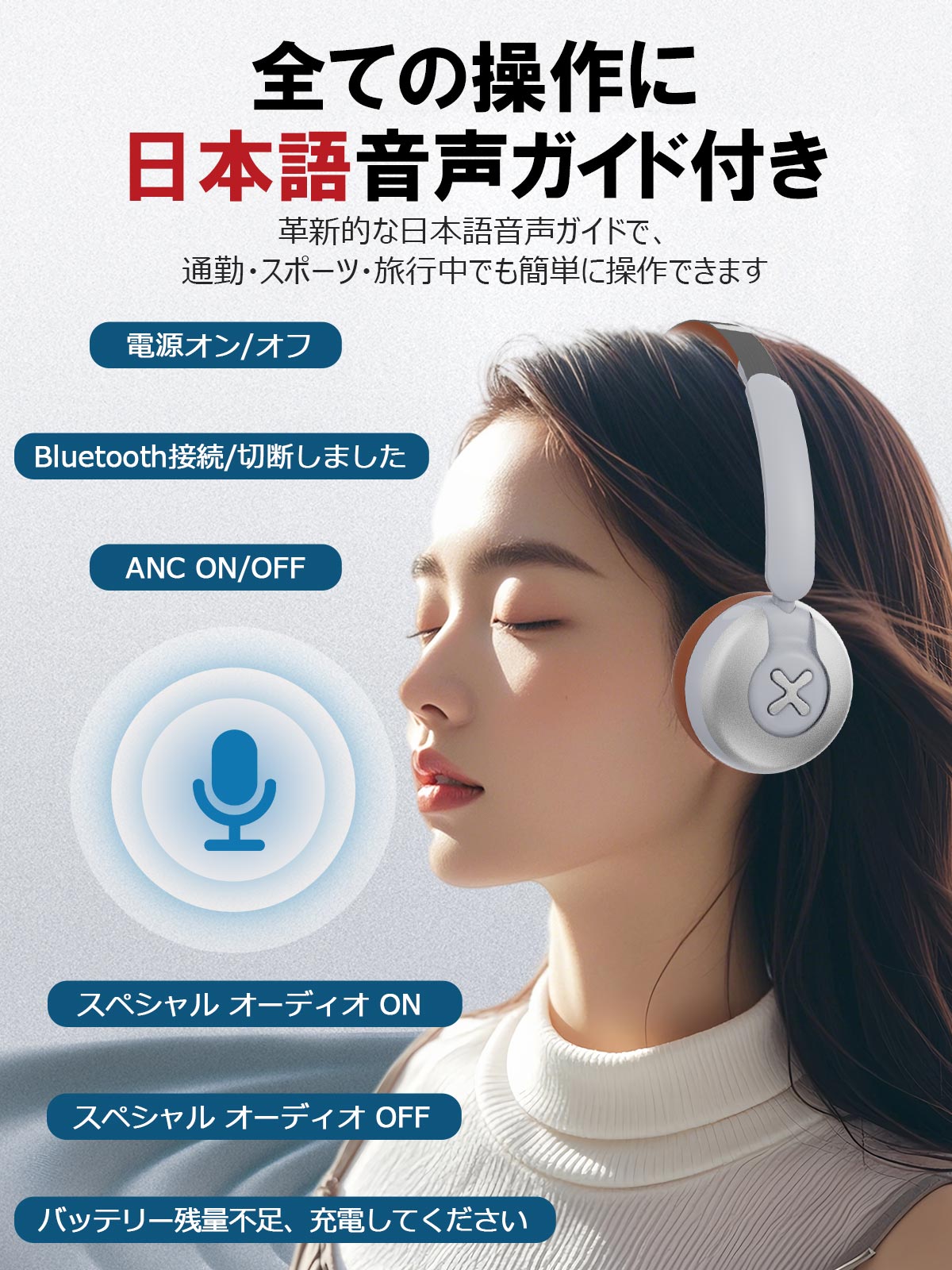 【日本語音声ガイド機能】従来のヘッドホンと比較して、この内蔵マイク付きのヘッドホンは日本語音声ガイド技術を搭載しており、ボタンを押すたびに操作内容を日本語で音声案内してくれます。スマートフォンを取り出すことなく、電話を受けることができ、便利なハンズフリー通話が可能です。さらに、高音質の音楽を楽しみながら、耳機の機能を簡単に操作でき、様々な便利な機能を手軽に活用できます。