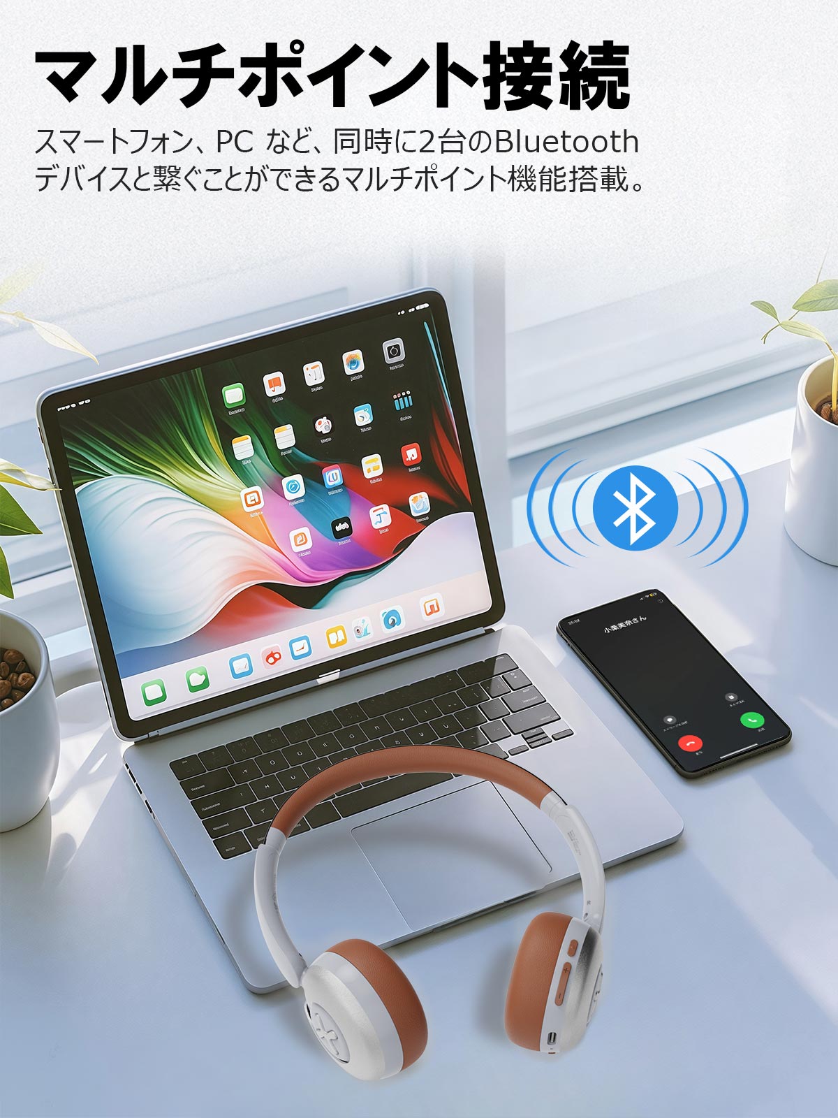 【Bluetoothワイヤレスヘッドホン】最先端のBluetooth 5.4技術を搭載し、最大約10メートルの範囲で強力で安定した接続を提供します。電源ボタンを3秒間長押しすることで、ヘッドホンがすぐに起動し、Bluetoothペアリングモードに自動で切り替わります。さらに、最大2台のデバイスを同時に接続可能で、スマートフォンで音楽を楽しみながら、PCでのビデオ会議や通話もスムーズに対応できます。高音質ワイヤレスヘッドホンで、音楽や通話の際に最高のパフォーマンスを発揮します。※再生可能な音源は1台のデバイスのみとなります。