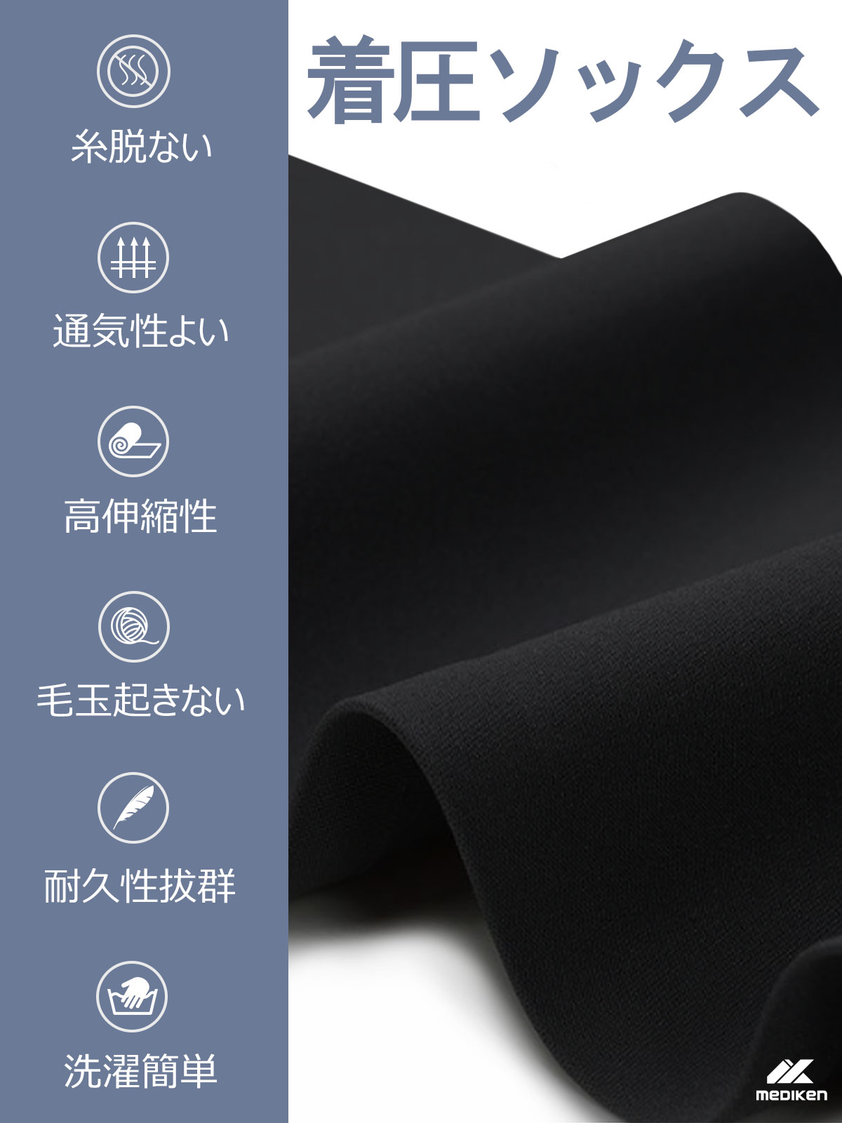 【一般医療機器認定・きつくない着圧ソックス】この着圧ソックスは、日常生活での快適さを追求した設計で、日本一般医療機器認証も取得しました。適度な圧力を維持しながらも、締め付け感が少ないため、長時間の使用でも疲れにくく、快適に過ごせます。仕事や家事、リラックスタイムにもぴったりです。