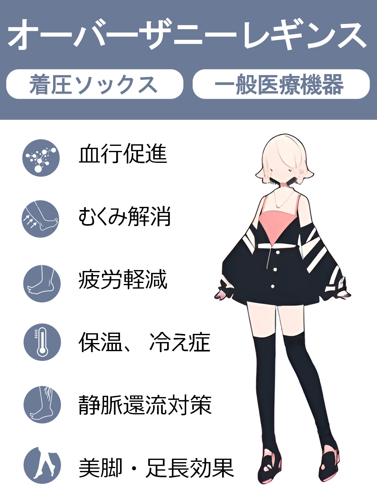 ●装着部位(ふくらはぎ、足首)の血行促進、脚のむくみを軽減する。