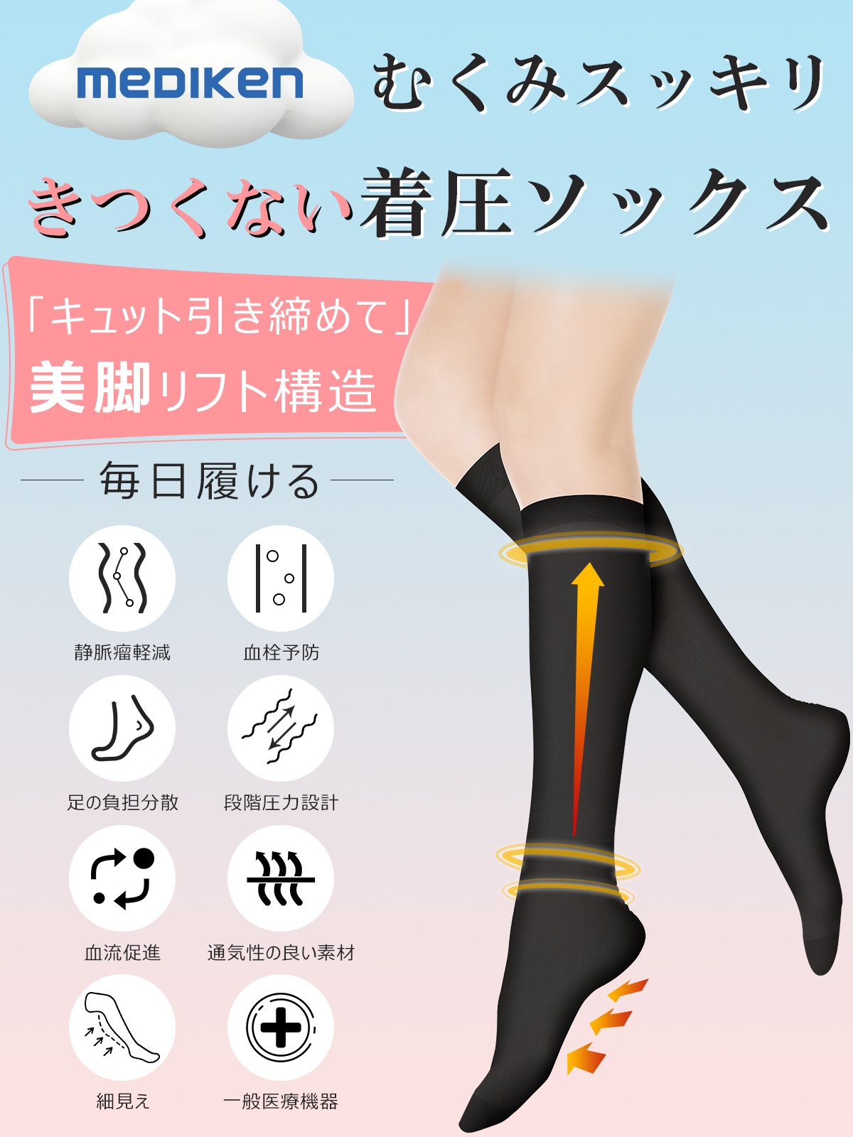 クーポン割引+P5倍 着圧 ソックス 医療 もくみ 緩和 弾性ストッキング 医療用 圧着クッズ 圧着 ソックス つま先無し 医療用ストッキング 下肢静脈瘤