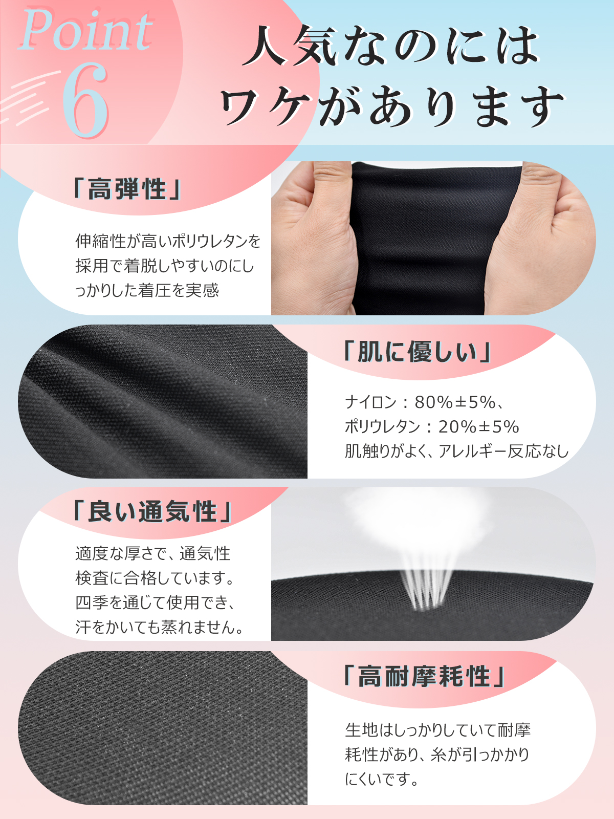 ●口ゴムはずり落ちを防ぎ、肌にやさしくフィット。