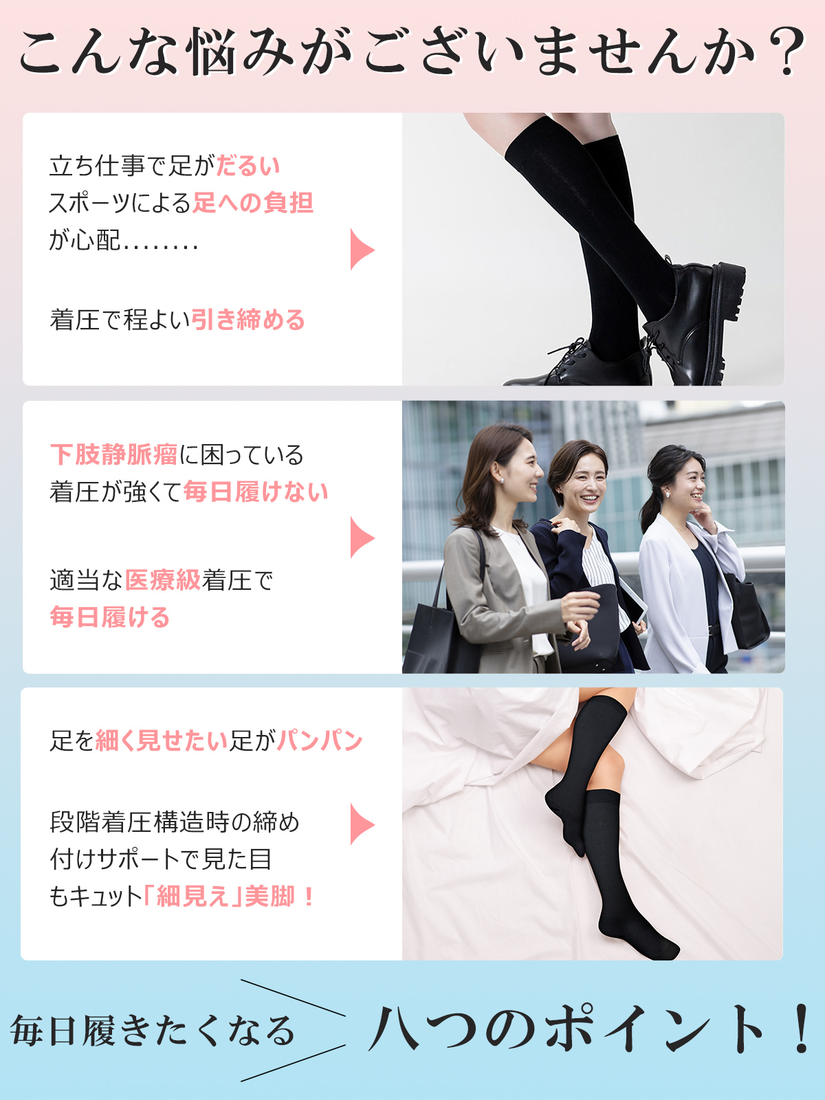 ●ふくらはぎと脚の疲れや重さを和らげる。