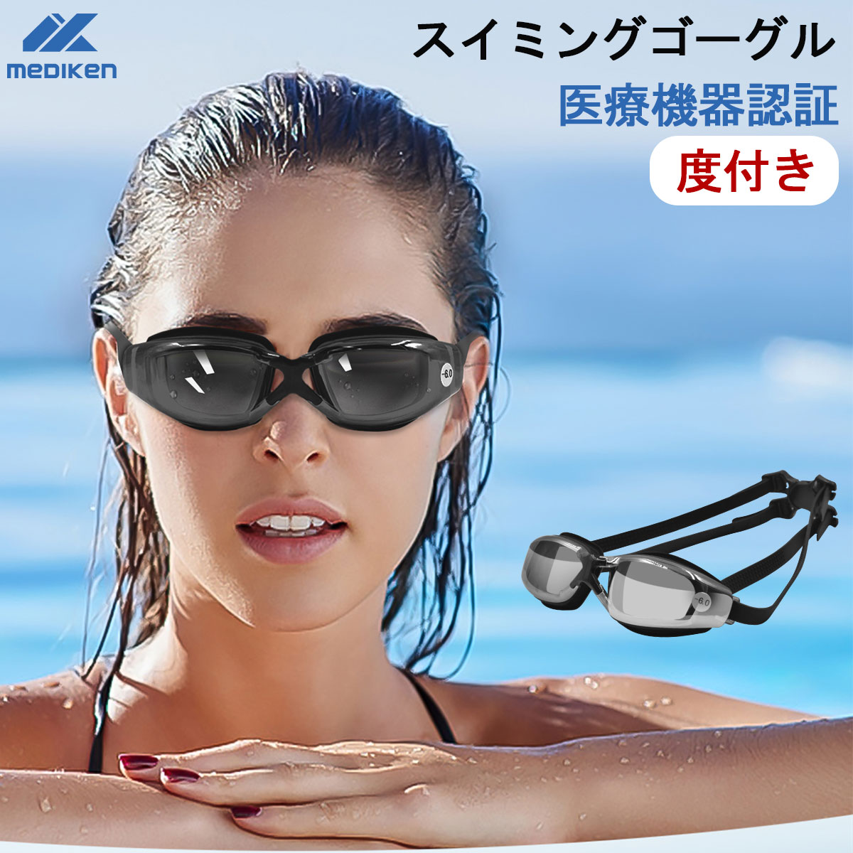 【安心な医療機器認証品】スイミングゴーグル 度付き ゴーグル 水泳 くもり止め スイムゴーグル 水中メガネ UVカット 低抵抗 水中眼鏡 水中ゴーグル 大人 子供 男女兼用 広い視野 近視用 度付きレンズ 送料無料 2色 ブラック ブルー ★収納ケース付★ 父の日ギフト
