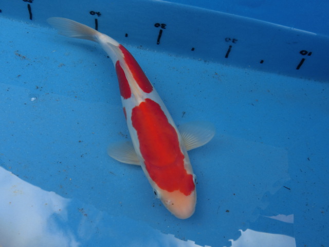 錦鯉34cmドイツ紅白革鯉(右鼻先にごく小さいシミあり) 性別不明です No.01108