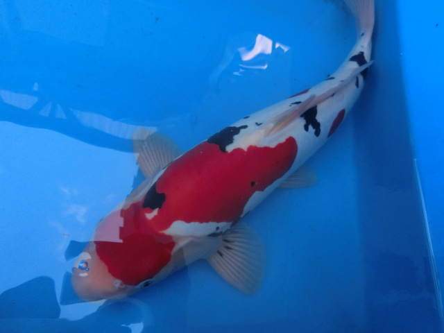 錦鯉50cmドイツ大正三色革鯉(エラの薄いひだが少しだけ外側に向いています) 性別不明です(オスだと思います) No.01123