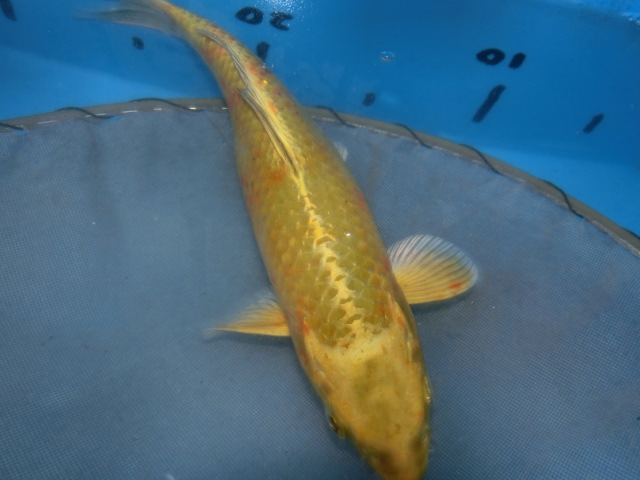 錦鯉22cm変わり黄金(飛び緋あり、麒麟黄金から出ました) 性別不明です No.0209