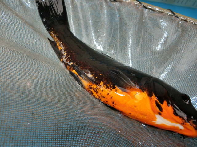 錦鯉19cm愛の 漆墨 烏鯉(からすこい)腹赤(鮮明) 和鯉 性別不明です No.0618
