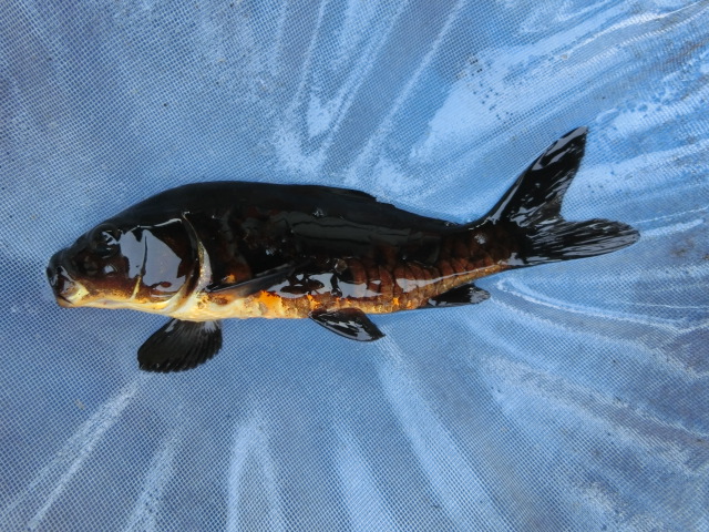 錦鯉18cm漆墨 烏鯉(大鱗です)腹赤 性別不明です No.0985