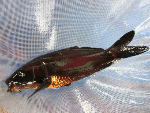 錦鯉19cm漆墨 烏鯉(からすこい)腹赤墨模様 和鯉 性別不明です No.1204