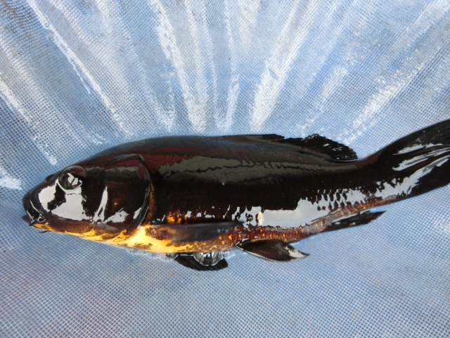錦鯉18cm漆墨 烏鯉(からすこい)腹赤墨模様 和鯉 性別不明です No.1212