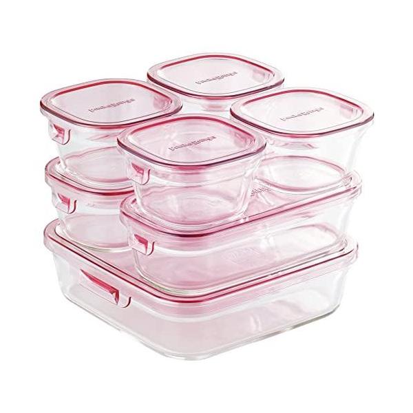 イワキ PSC-PRN-P7 パック&レンジ 保存容器 耐熱ガラス ピンク システムセット 7点セット iwaki