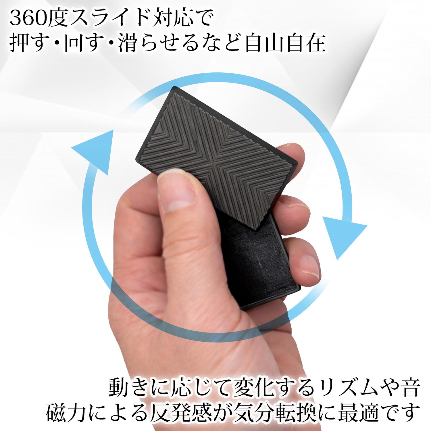 360度スライド対応で、押す・回す・滑らせるなど自由自在に操作可能。動きに応じて変化するリズムや音、磁力による反発感が楽しめ、ストレス緩和や気分転換に最適です。