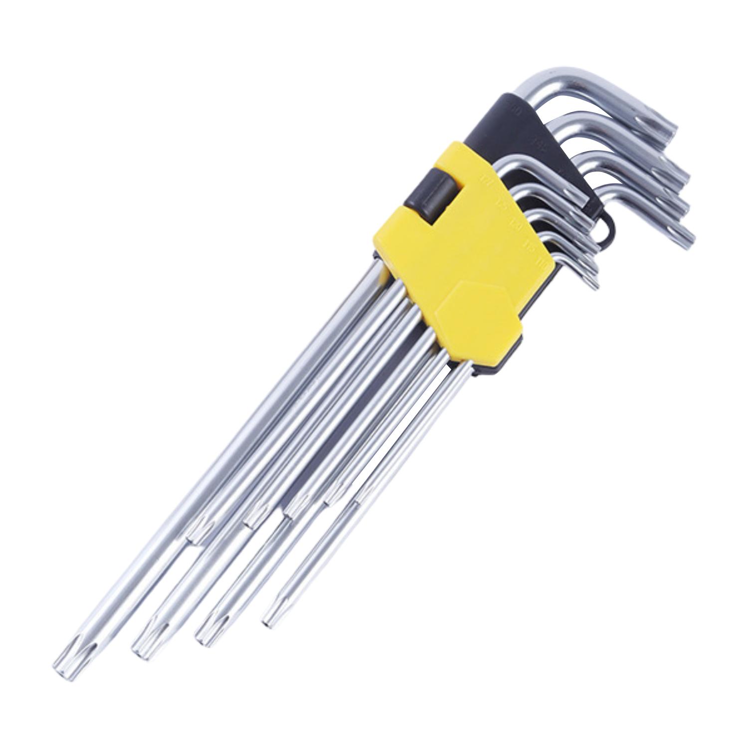 トルクスレンチセット いじり止め対応 星型ヘックスローブレンチ 9本組 T10〜T50 L型 精密ドライバーセット 特殊ネジ対応 ((S